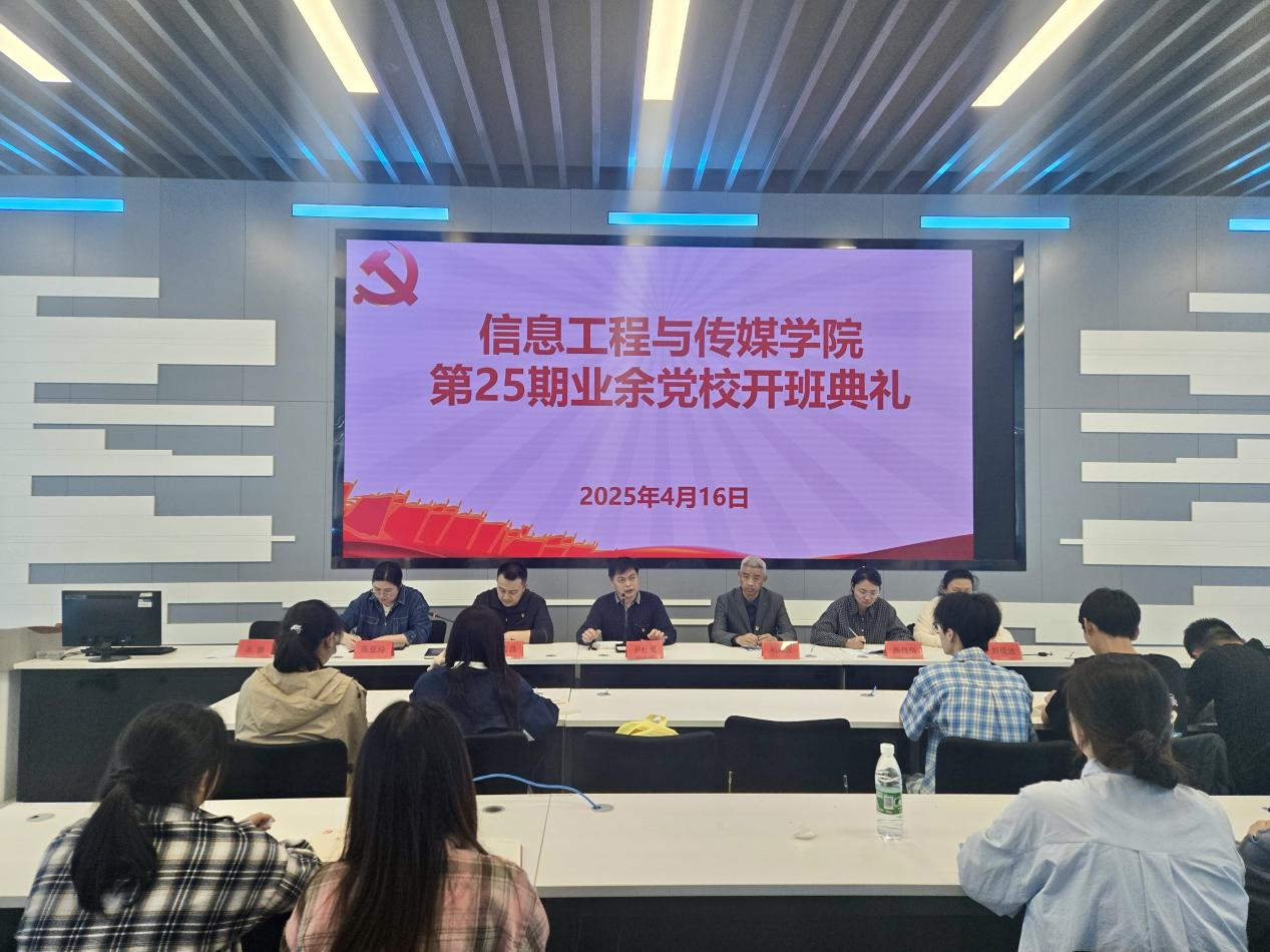 为深入学习贯彻党的二十大和二十届三中全会精神,做好新时期党员发展工作,培养具有共产主义信念和觉悟的社会主义建设者和接班人,4月16日下午,信息工程与传媒学院第25期业余党校开班典礼顺利举办。信息工程与传媒学院党总支副书记(主持工作)尹仕果、第五、第六党支部全体教师党员和71名学员参加开班典礼,典礼由党总支副书记江寅昌主持。