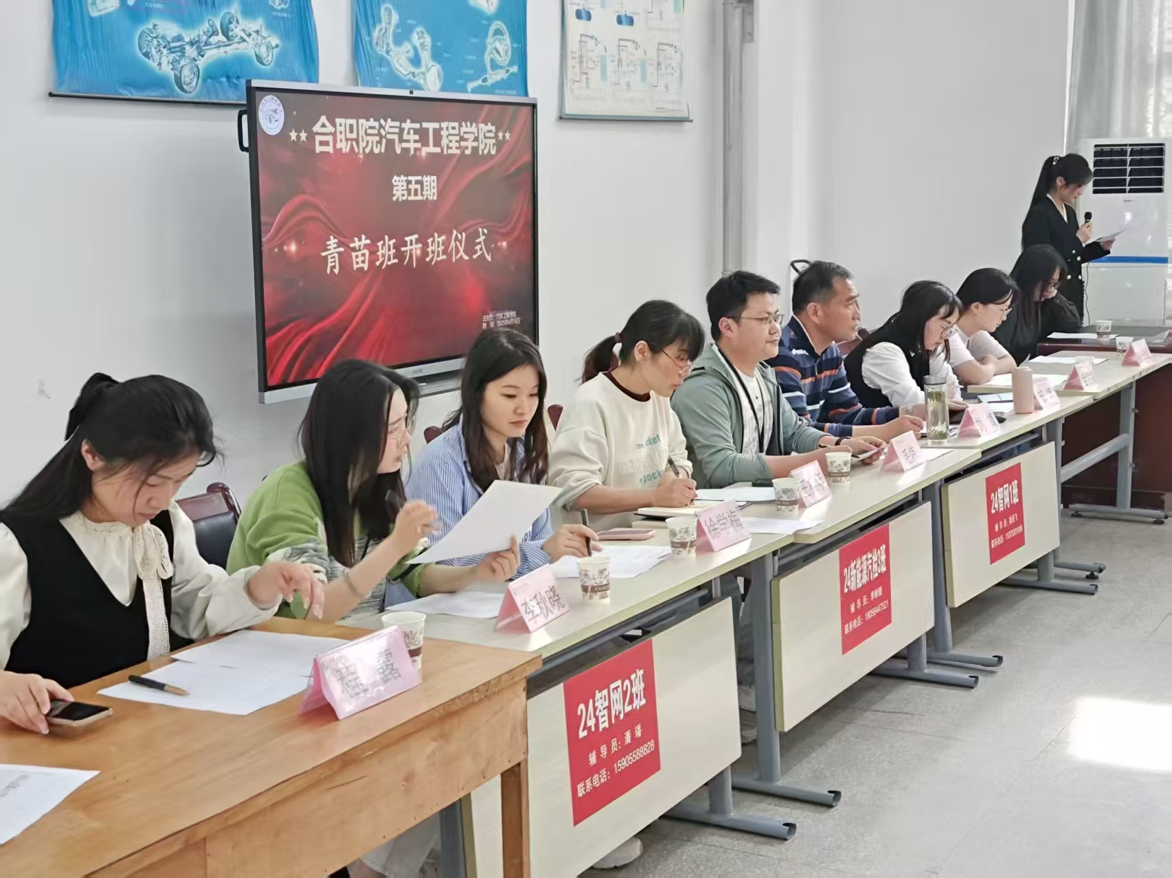 为贯彻习近平新时代中国特色社会主义思想,深入学习党的二十届三中全会精神,培养一批有理想、有追求、有担当、有作为、有品质、有修养的青年学生骨干,汽车工程学院于4月16日下午在汽车楼212举办了青年马克思主义者培养工程第五期青苗班暨领航者计划第四期培训班暨开班仪式。该院党总支副书记(负责工作)刘靖、党总支副书记邹坤、团总支书记毛炜、全体学管办老师和50名青苗班学员参加开班仪式,仪式由团总支书记毛炜主持。