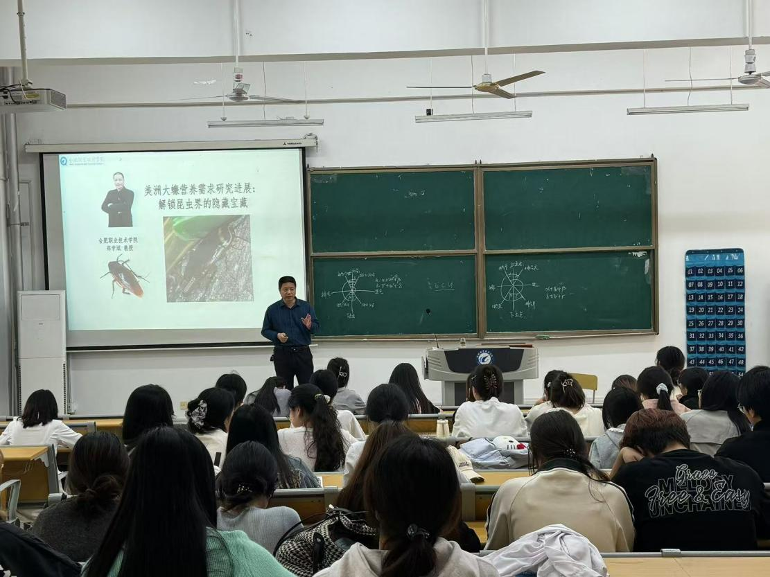 4 月 23 日下午,生物工程学院在鼓山校区教学楼 A1 阶梯教室举办《美洲大蠊营养配制技术研究》专场学术交流活动,来自食品、园林、药学专业的 90 余名学生齐聚一堂,聆听伟德源自英国1946郑学斌教授带来的昆虫研究领域前沿分享。