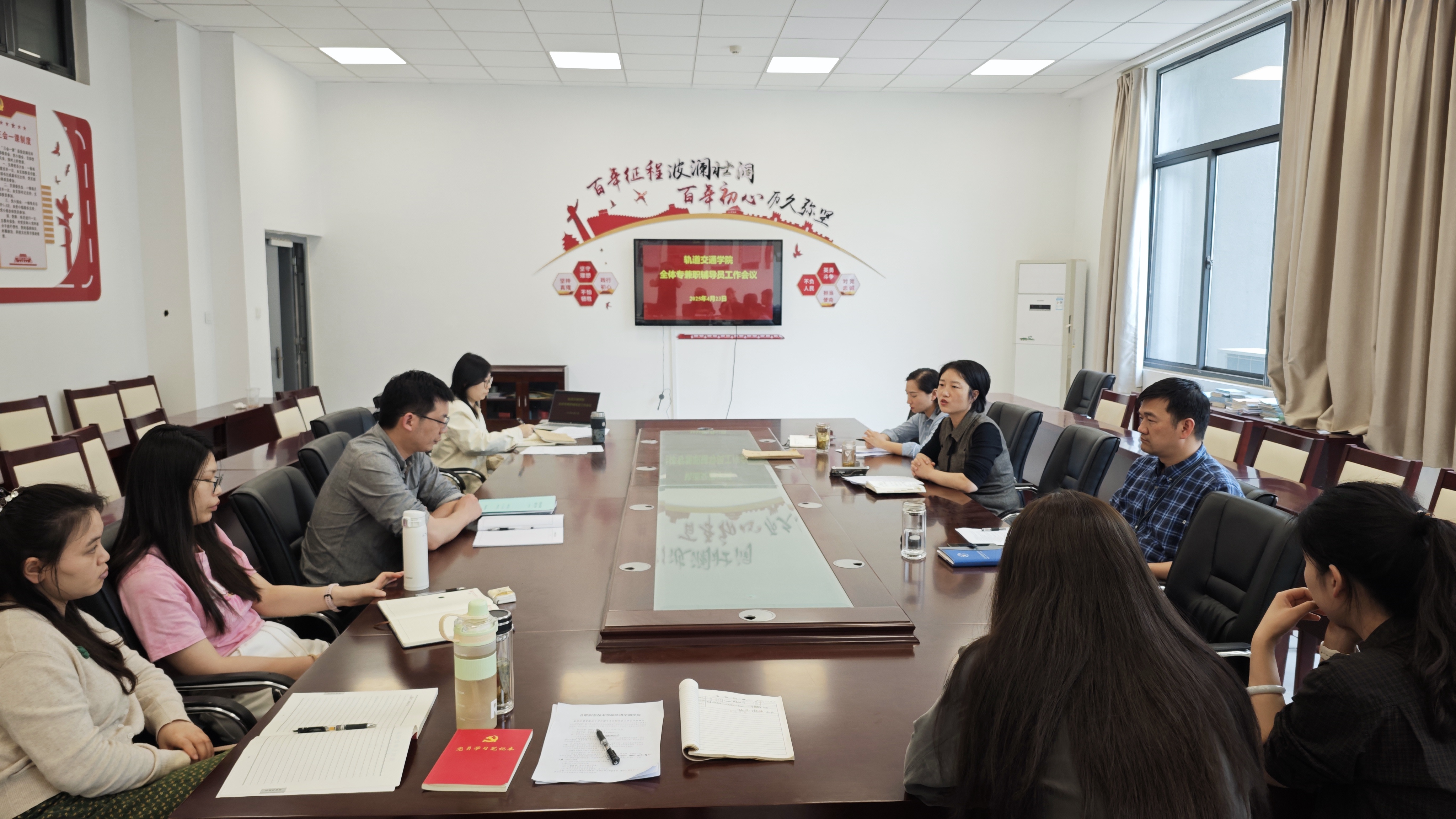为进一步强化学生教育管理工作,总结工作经验,4月23日下午,轨道道交通学院在轨道楼207会议室召开期中全体辅导员工作会议,校宣传统战部长、轨道交通学院党总支书记佘海月、副书记梁雯婷和副院长劳志鸿出席会议,该院全体专兼职辅导员参会。
