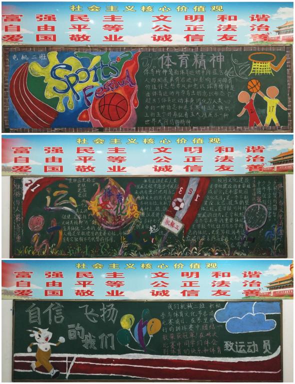 活动开展以来,各班积极搜集素材,精心设计,用鲜艳的色彩、独特的设计抒发了对阳光体育的理解。各班板报以图文并茂的形式,将运动的意义、运动技巧以及注意事项作了相关介绍,使学生对运动知识有了更深刻的了解。