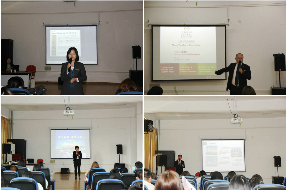 为落实经贸旅游学院旅游管理专业实习就业工作,加强实习生对实习单位的了解,促进学校与实习单位的交流与合作,引导毕业生服务合肥区域经济,实现高质量就业。近期,经贸旅游学院在经贸楼507教室举办旅游管理专业实习单位实习宣讲会,参会企业有安徽饭店、巢湖碧桂园酒店、合肥香格里拉酒店、中铁凯莱酒店、合肥万达酒店集团等省内外九家单位,2016级旅游管理专业全体实习生参加本次宣讲会。