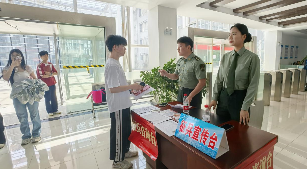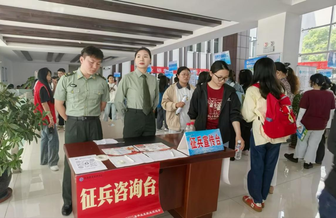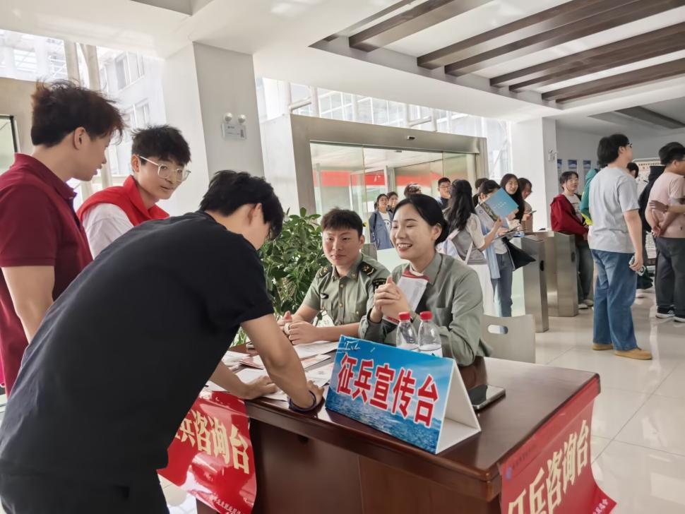 为深入贯彻落实新时代强军目标,鼓励大学生积极参军入伍,提升兵员征集质量,为国防和军队现代化建设输送高素质医学人才,5月7日下午,医学院学工办在2025年春季校园招聘双选会现场设立“应征入伍咨询台”,开展征兵政策宣传活动。