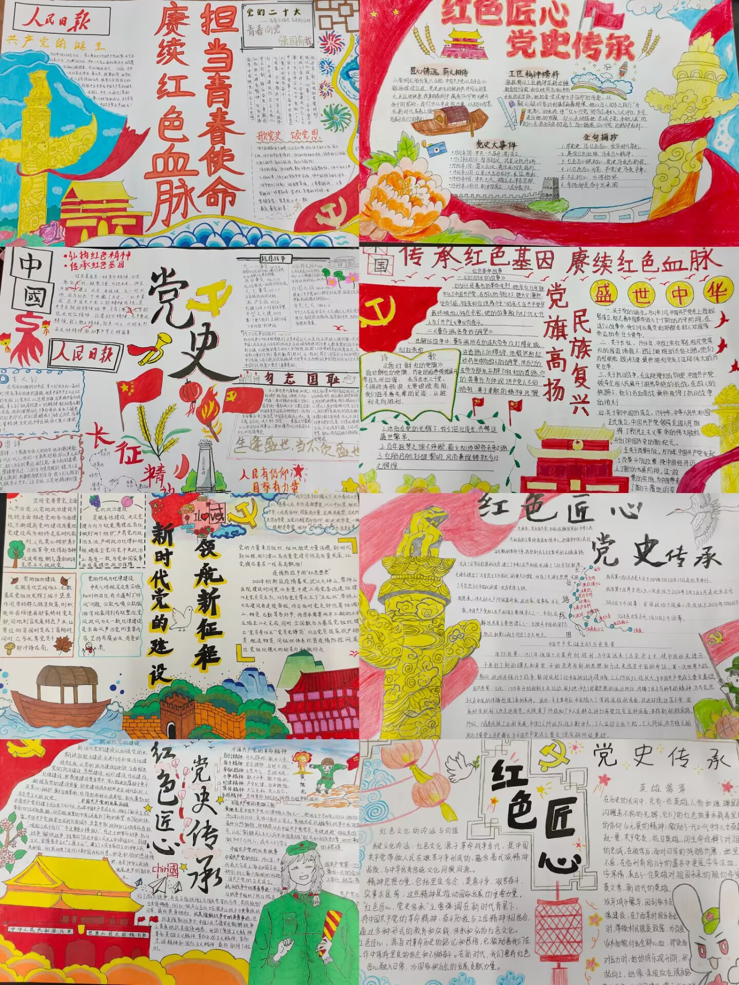 活动启动后,入党积极分子们积极响应,纷纷投入到手抄报的创作中。他们以党的历史发展为主线,精心设计、用心绘制,通过生动的图片和文字,展现了中国共产党在不同历史阶段的使命担当和卓越成就;在创作过程中,入党积极分子们充分发挥自己的想象力和创造力,运用多种绘画技巧和表现形式,查阅大量党史资料,深入挖掘红色故事,力求将党史知识准确、生动地呈现出来。精心的版面设计,彩鲜艳的图案和文字,使手抄报不仅具有教育意义,更成为了一件件精美的艺术作品。