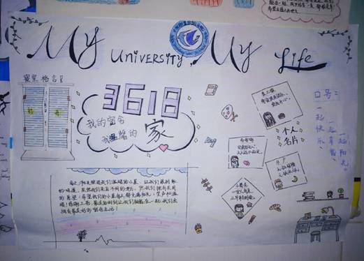 学生们对本次活动积极响应,踊跃参加,每份作品主题鲜明,版式设计多样化,彰显了当代大学生独具特色的寝室文化,更体现出他们对宿舍的热爱和奉献。经过认真评选,17市场营销班2224宿舍荣获一等奖,17电商班2212宿舍和17旅游1班3339宿舍荣获二等奖,17会计1班2108宿舍、17旅游2班3618宿舍和17会计(中美)班3336宿舍分别荣获三等奖。