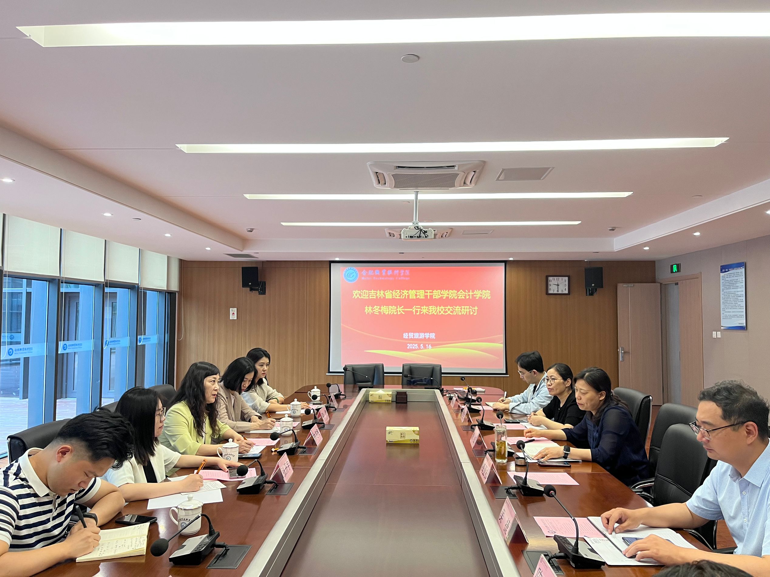 为深化职业教育改革经验共享,促进校际合作与专业建设,近日,吉林省经济管理干部学院会计学院院长林冬梅一行来到伟德官网,开展职业教育建设与发展方向经验交流活动。经贸旅游学院党总支书记梅亚松、院长赵红、副院长、教学办主任、会计教研室主任、专业骨干教师及安徽梦森科技有限公司董事长吴捷参会。