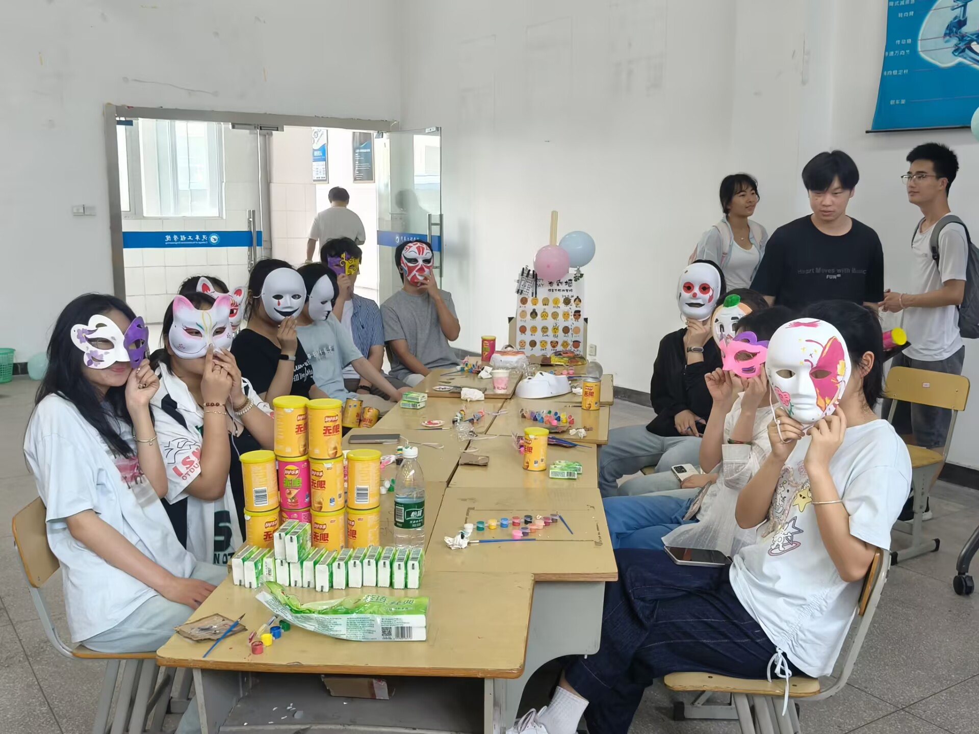 活动现场,多个精心设计的游戏环节精彩纷呈。在“笑脸墙”区域,同学们纷纷留下灿烂笑容的照片,一张张笑脸不仅展现了大家的青春活力,更传递出积极乐观的心态,成为活动现场一道亮丽的风景线。“吹走压力球”游戏中,同学们鼓足气吹动小球,将生活与学习中的压力随气流一同释放,在欢声笑语中放松身心。“情绪面具DIY”最受同学们欢迎,大家充分发挥创意,用画笔在面具上描绘出内心的情绪世界,将无形的情绪转化为色彩斑斓的艺术作品,在创作过程中加深了对自我情绪的认知与接纳。“四平八稳”游戏考验着同学们的耐心与专注力,大家在保持平衡的过程中锻炼了心理素质,学会了沉稳应对挑战。而“压力气球爆破”环节更是将活动推向高潮,同学们用力踩破气球,随着一声声清脆的爆破声,压力也随之烟消云散。
