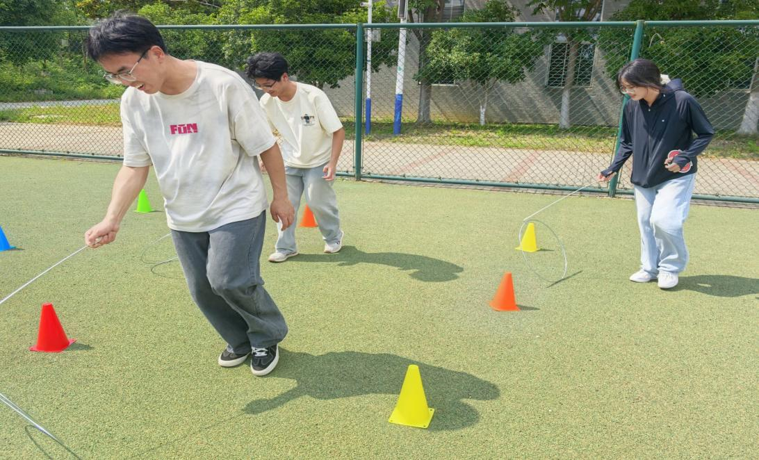 知书答影协会与舒窈职业礼仪社以“寓教于乐”形式倡导绿色理念与健康风尚。知书答影协会的“布包DIY环保趣无限”活动,同学们发挥创意,在环保布袋上绘制五四主题图案,在传递红色精神的同时又践行低碳理念。舒窈职业礼仪社在操场举办了“趣运动·致青春”主题活动,活动精心设置了“四渡赤水”“革命风火轮”“红色知识接力赛”三个趣味环节,同学们在挥洒汗水的同时,也在协作中进一步深化了对五四精神的理解。