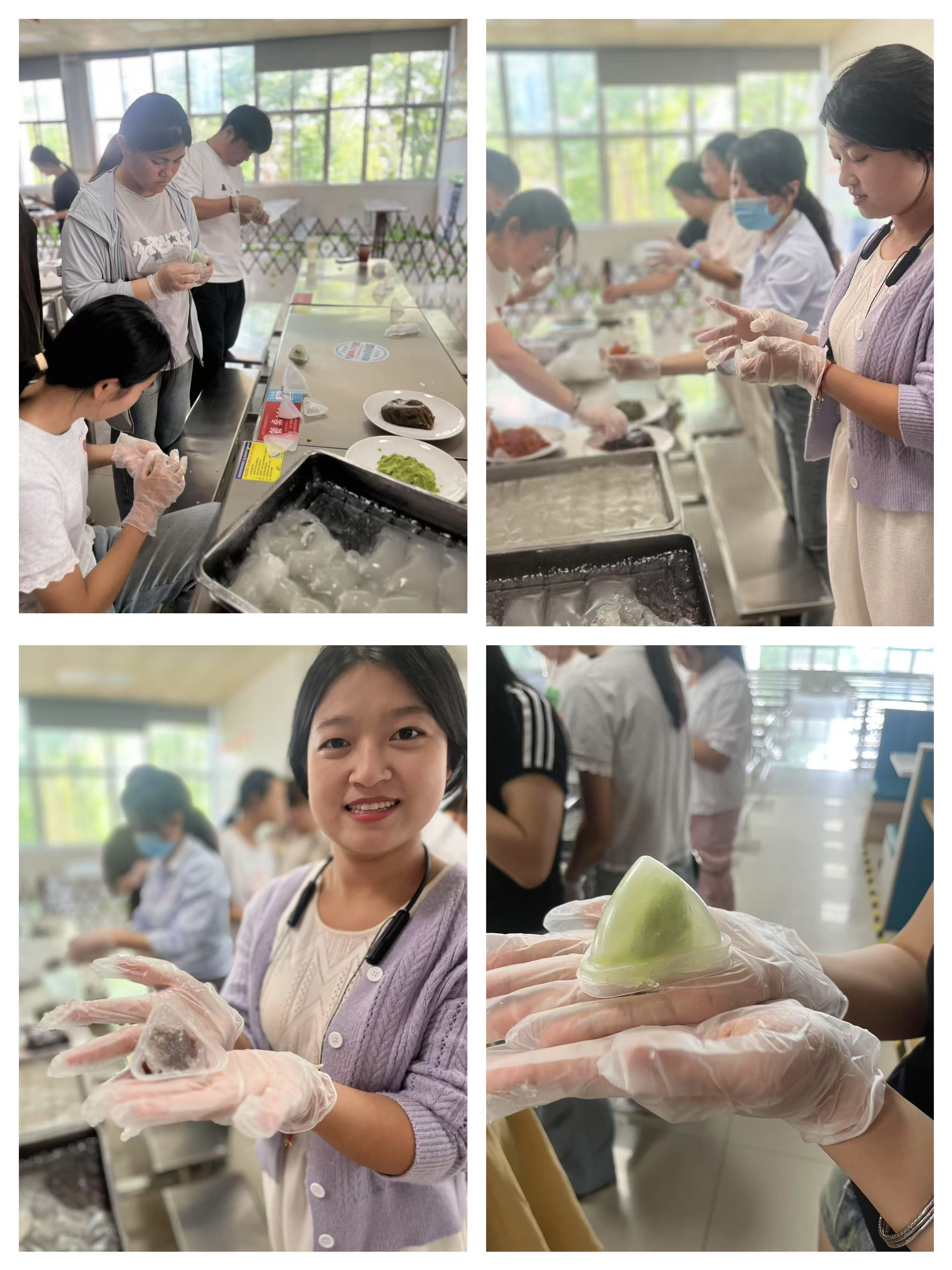 活动在鼓山校区丁香园二楼和D教学楼同步展开,师生们在欢声笑语中体验了传统文化的魅力与新意。丁香园内,一场别具一格的“包冰粽”体验活动吸引了众多目光。与传统的糯米粽不同,冰粽以水晶粉为原料,包裹着红豆、水果等丰富馅料,冷藏后口感清凉爽口,为初夏时节带来一丝清甜。大家兴致勃勃地动手制作,一个个色彩缤纷、口味清新的冰粽,不仅满足了味蕾,更传递着浓浓的节日祝福。