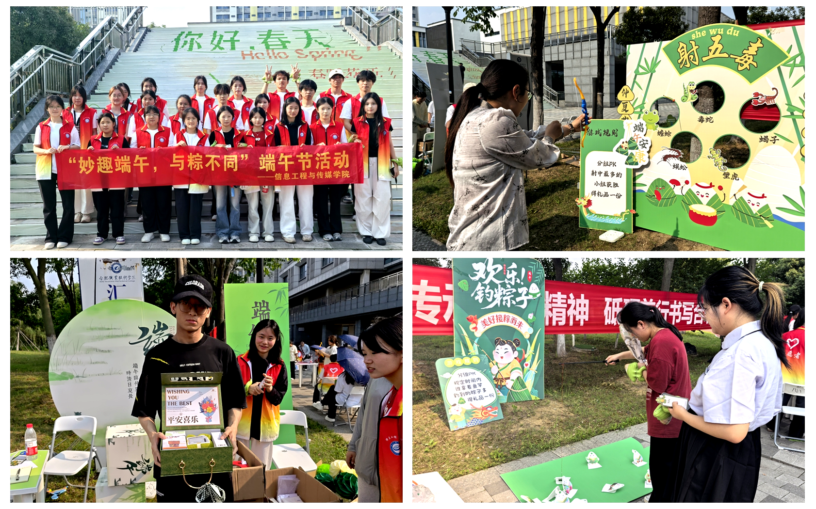 人气最旺的“妙趣端午,与粽不同”民俗游园区设两大互动板块:手工区指尖翻飞,编织五彩绳、缝制个性香囊、创意捆扎艾草花束,草药清香弥漫;游戏区欢笑不断,“一夹即‘粽’”拼手速、知识竞答赛底蕴、“射五毒”祛病害,竞技中传承习俗。手持积分卡的学子穿梭各区间,每完成一项挑战即获一枚特色印章。集齐印章者涌入抽奖区,特等奖端午礼盒、实用雨伞水杯、文创书签挂件等琳琅礼品花落各家。未中奖者亦笑意盈盈——腕间彩绳、怀中艾束、袋里香囊,也是满载而归。(供稿:信息工程与传媒学院 刘晨迪 初审:尹仕果 审核:杨璨)