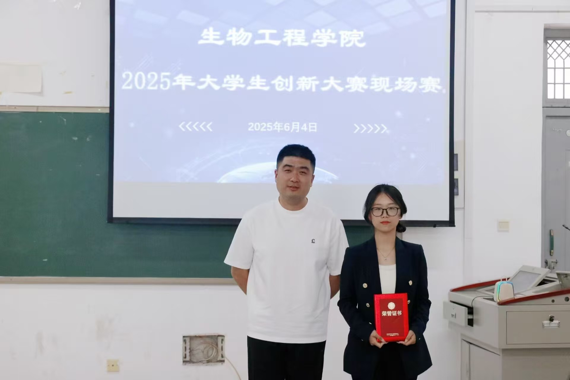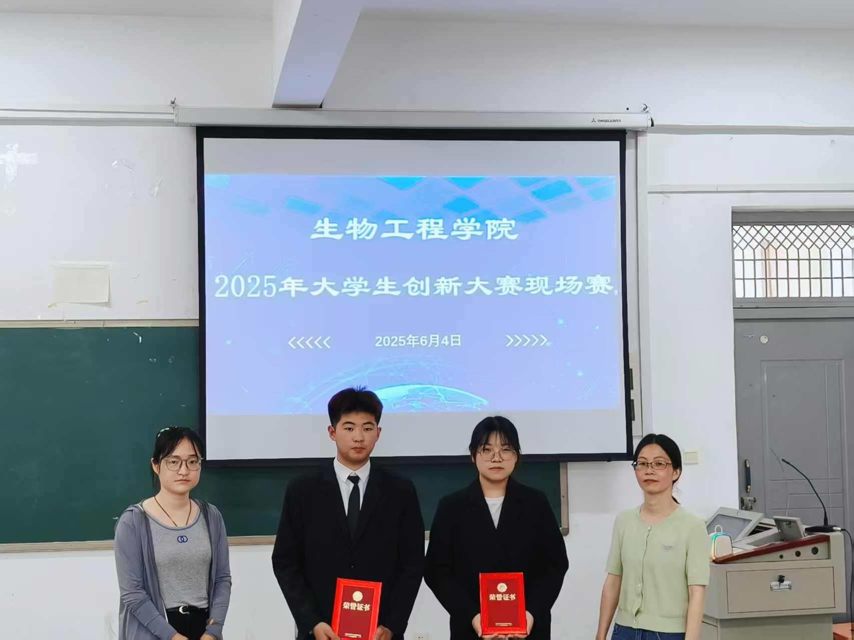 本次大赛的成功举办,展现了该院学子的创新智慧,也充分展示了该院创新创业教育成果。未来,该院将以赛事为依托,深化 “以赛促教、以赛促学、以赛促创”,推动赛事成果转化与产学研用融合,培育更多兼具创新精神与实践能力的人才,为区域经济社会发展注入强劲动力。(供稿:生物工程学院 郑丹 初审:慈龙保 审核:杨璨)