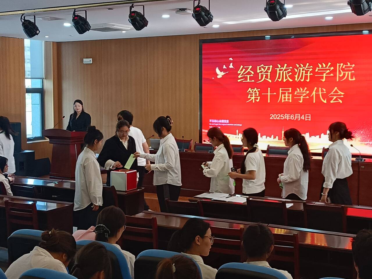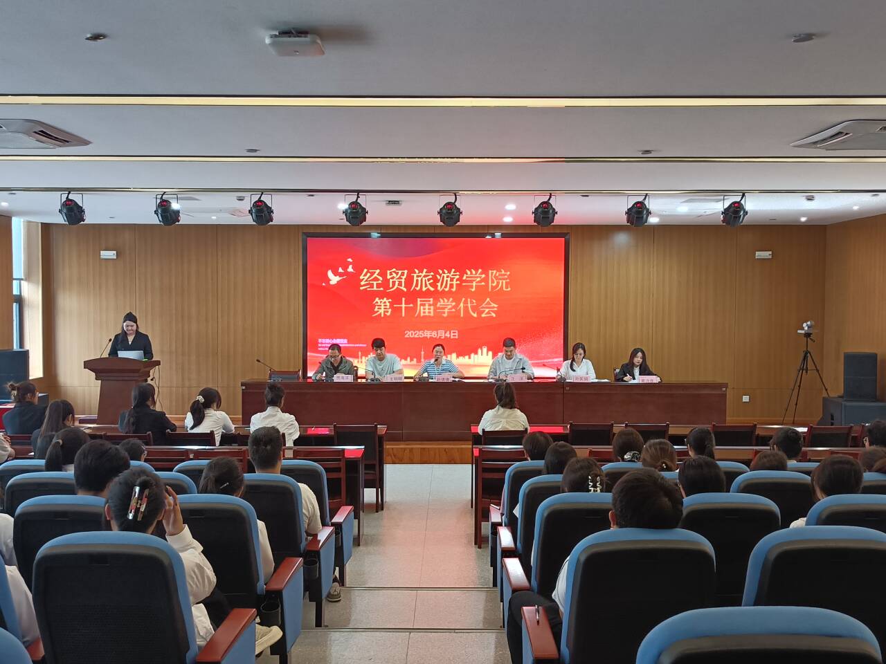6月4日下午,经贸旅游学院第十次学生代表大会在图书馆一楼报告厅举行。校团委副书记汪洋出席会议,该院党总支副书记赵倩倩、团总支、学管办等负责人及50名学生代表参加大会。