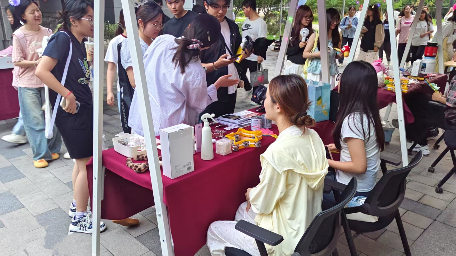 活动当日,现场人头攒动,一个个摊位整齐排列,琳琅满目的商品令人目不暇接。从学习资料、经典教材到文学书籍,从实用电子产品、特色文创到精美服饰鞋包及各类生活用品等,种类丰富,价格亲民,满足了同学们多样化的需求。参与者们精心布置自己的摊位,不仅制作了创意十足的宣传海报,还别出心裁地设置了趣味互动环节。同学们在各个摊位间穿梭,挑选心仪的物品。整个交易过程充满了欢乐与惊喜,整体氛围轻松愉悦。