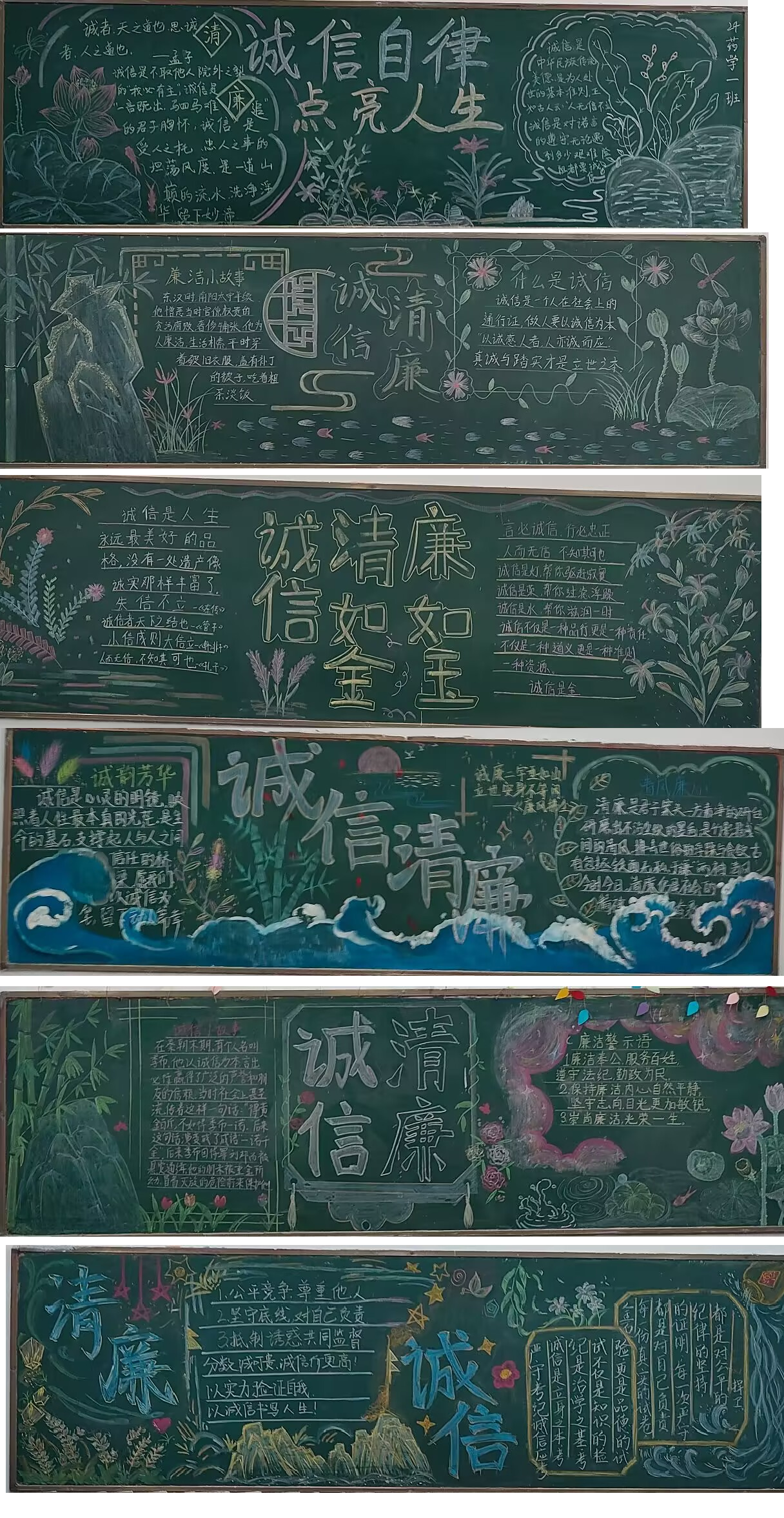 为厚植清廉校园和诚信文化的土壤,构建崇德向善、明礼诚信、风清气正的育人环境,6月初,生物工程学院开展“扬清廉之风 做诚信青年”主题黑板报报集中展示活动。来自24级12个班级的优秀黑板报作品精彩亮相,以图文并茂的形式勾勒出诚信教育和清廉校园的生动图景。