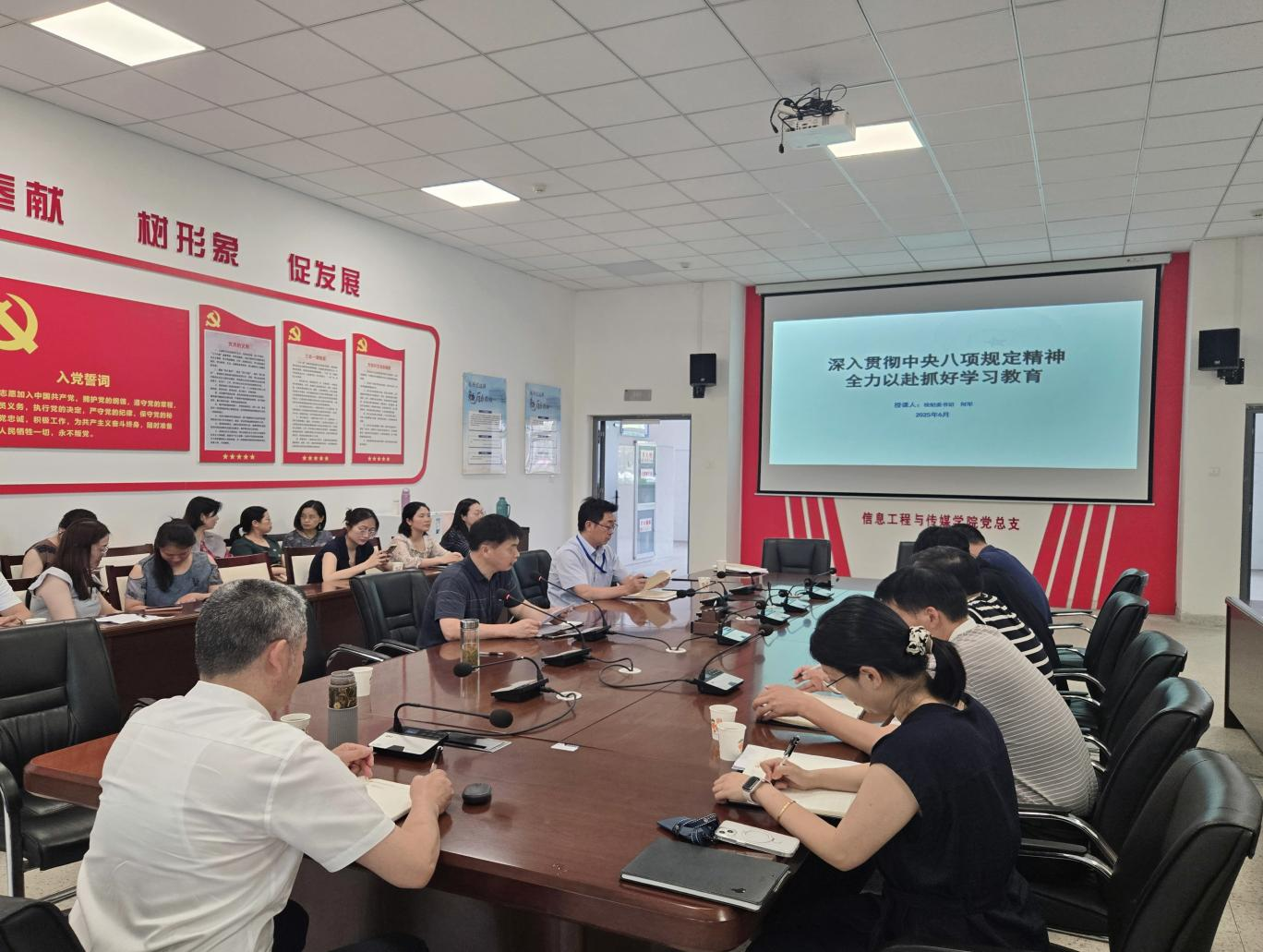 为进一步推动深入贯彻中央八项规定精神走深走实,注重用身边事教育身边人,以案示警,以案明纪,以案促改,6月18日,信息工程与传媒学院召开深入贯彻中央八项规定精神学习教育警示会暨专题党课。校纪委书记何军及全体干部、教师党员参加会议,会议由该院党总支副书记(主持工作)尹仕果主持。