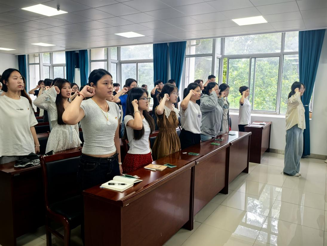 在团总支学生兼职副书记邢小旭同学的带领下,新团员们面向鲜艳的团旗,举起右拳,庄严宣誓。他们的誓言铿锵有力,表达了为共产主义事业而奋斗的坚定决心。