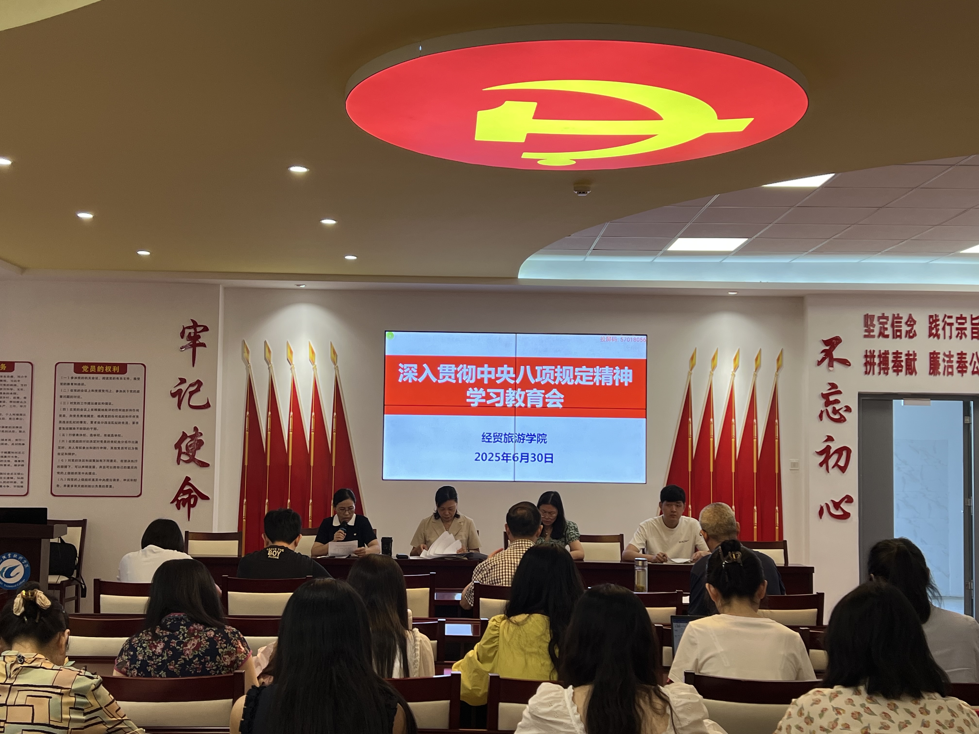6月30日,经贸旅游学院在党性体验馆召开政治理论学习会暨学期总结大会。该院全体教职工参加会议,会议由该院副院长付晓兰主持。