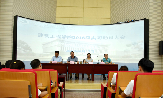 6月13日下午,建筑工程学院在图书馆二楼报告厅举行2016级学生实习动员大会,建筑工程学院院长范家茂、建筑工程学院党总支书记李红雨、建筑工程学院副院长魏永恒等出席大会,大会由建筑工程学院院长范家茂主持。部分专业课教师、辅导员及2016级全体学生参加,教务处处长宋风长出席大会。