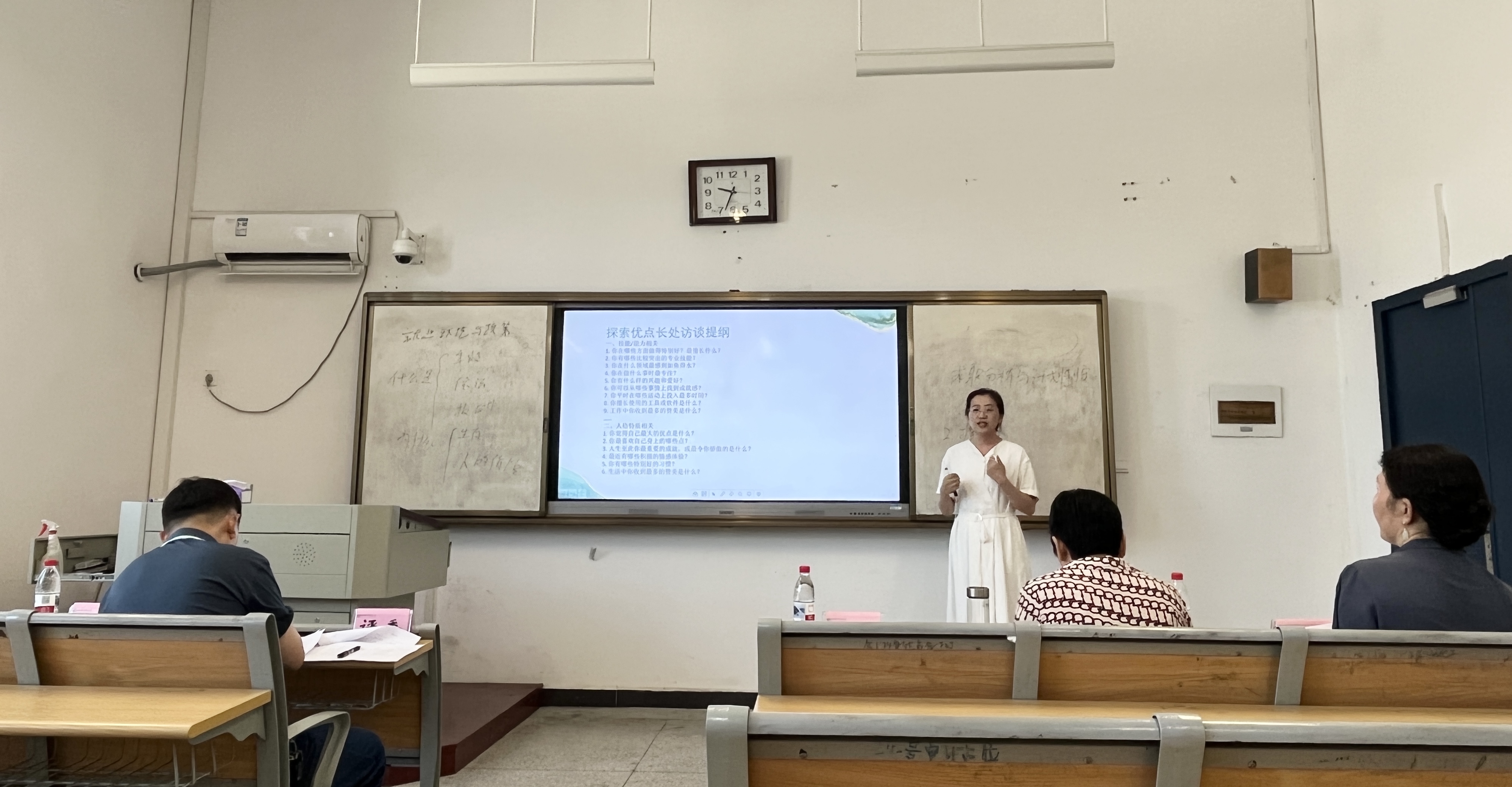 为全面提升课程教学质量,严把教学准入关,7月4日上午,就业与心理教研室在汇心湖校区教学南楼102教室组织开展2025-2026学年心理健康教育、大学生职业发展与就业指导课程试讲评审活动,特邀魏华教授、胥振国教授、王丹教授担任评委。