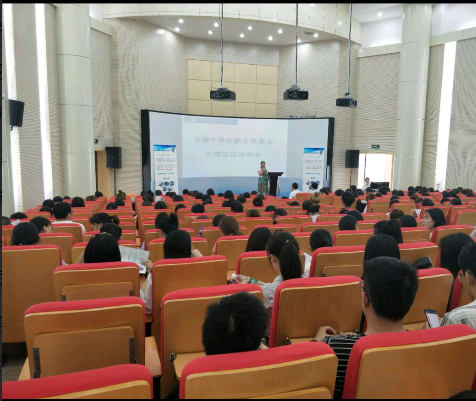 王玉蓉代表护理学院对钟晋一行来该院进行调研和交流表示欢迎,并向参加说明会的2016、2017级护理专业同学介绍了安徽中德创新发展基金赴德项目的基本情况和该项目的优势所在。