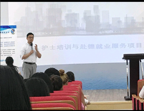 钟晋分别从项目基本概况、前景和挑战等方面对赴德项目进行了详细说明,对同学的疑问进行了现场答疑,并鼓励同学敢于挑战自己,学好德语和德国先进护理知识,走出国门,将先进护理技术和观念带回国内,共创中德交流新篇章。(供稿:护理学院 编辑:朱鹏飞)