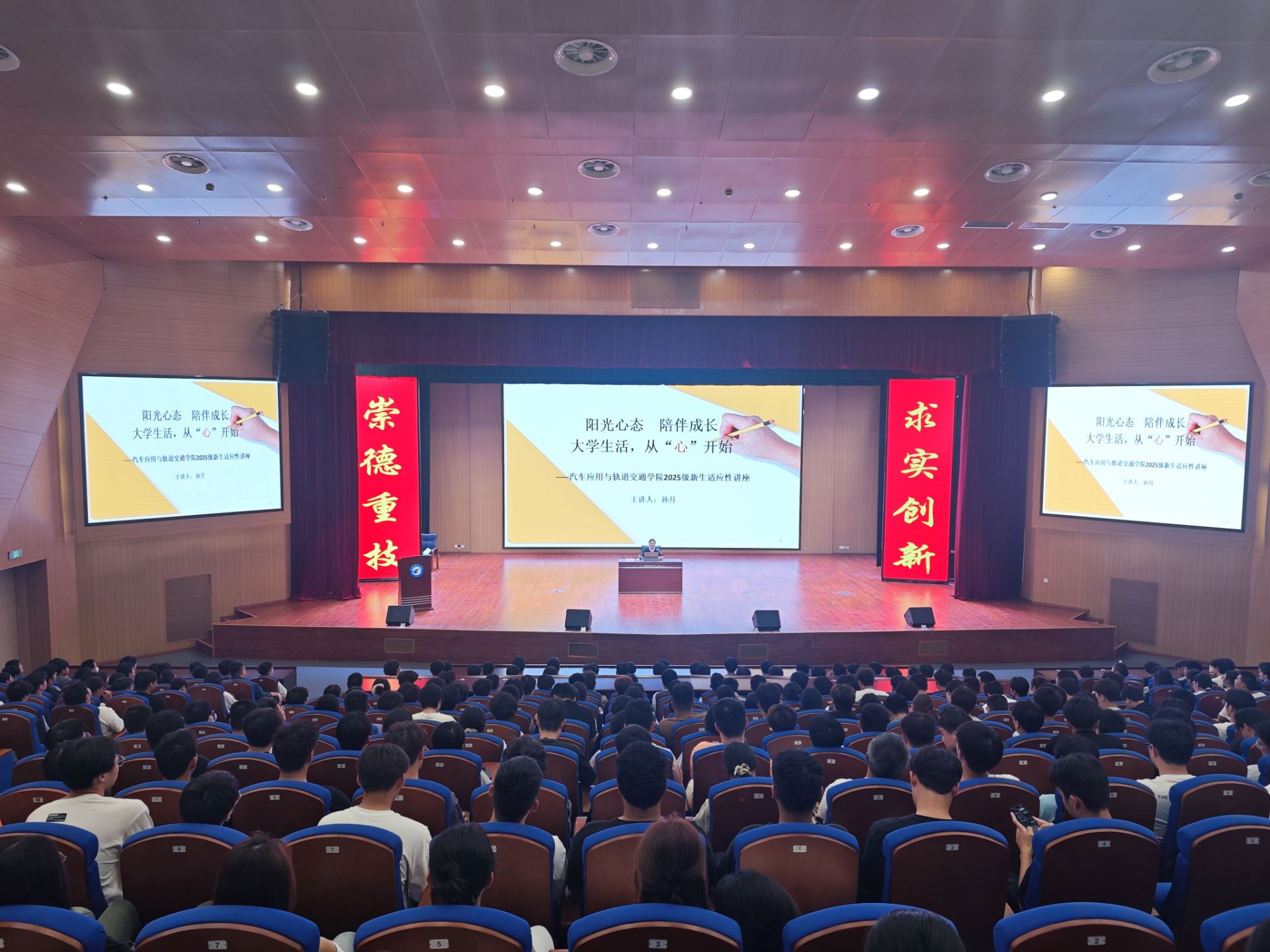 为帮助 2025 级新生快速破解大学适应难题,化解入学初期适应困惑,筑牢心理健康防线,9 月11 日,9月12日汽车应用与轨道交通学院分校区成功举办了新生适应性心理讲座,该院2025级全体新生现场参与。本次讲座特邀汪纬静老师与孙月老师主讲,为新生送上了一堂兼具温度与实用性的 “心理适应指南课”。