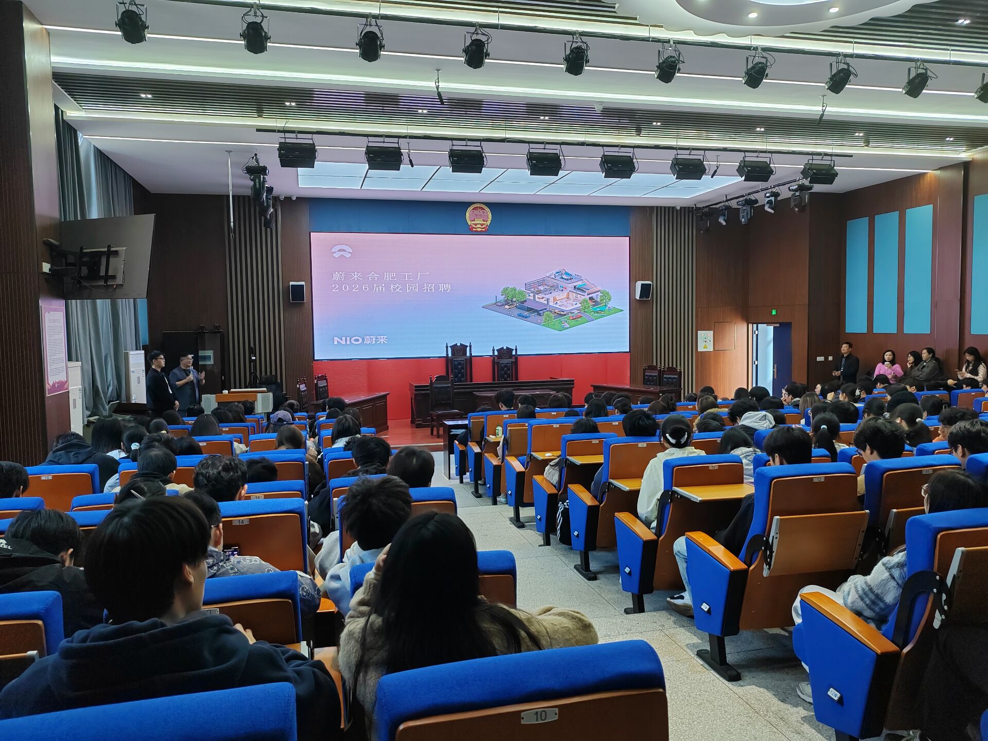 10月22日下午,全球领先的智能电动汽车企业蔚来汽车合肥工厂走进伟德官网汽车应用与轨道交通学院,在北教学楼开展了校园专场招聘宣讲会。此次宣讲会吸引了该院23级城市轨道交通专业的全体学生参加。