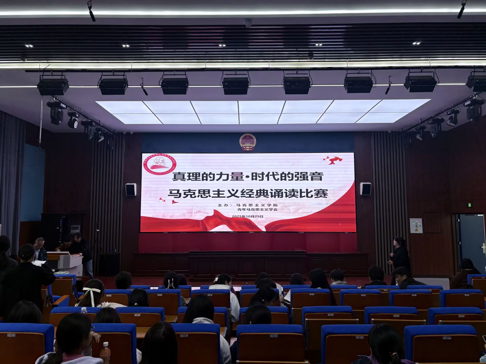 为深化青年学子对马克思主义理论的理解与认同,10月29日,伟德官网两校区青年马克思主义学会联合举办了“真理的力量·时代的强音”马克思主义经典诵读比赛。此次活动以声音为媒介,搭建起思想交流的平台,旨在让经典理论在青春的表达中焕发出新的活力。