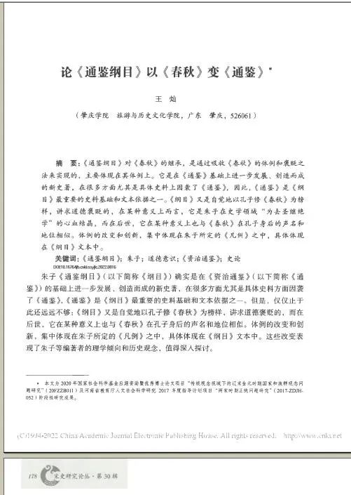 《纲目》对《春秋》的继承,是通过吸收《春秋》的体例和褒贬之法来实现的,主要体现在其体例上。它是在《通鉴》基础上进一步发展、创造而成的新史著,在很多方面尤其是具体史料上因袭了《通鉴》,因此,《通鉴》是《纲目》最重要的史料基础和文本依据之一。《纲目》又是自觉地以孔子修《春秋》为榜样,讲求道德褒贬的,从某种意义上而言,它是朱子在史学领域“为往圣继绝学”的心血结晶,而在后世,它在某种意义上也与《春秋》在孔子身后声名和地位相类似。体例的改变和创新,集中体现在朱子所定的《凡例》之中,具体体现在《纲目》文本中。