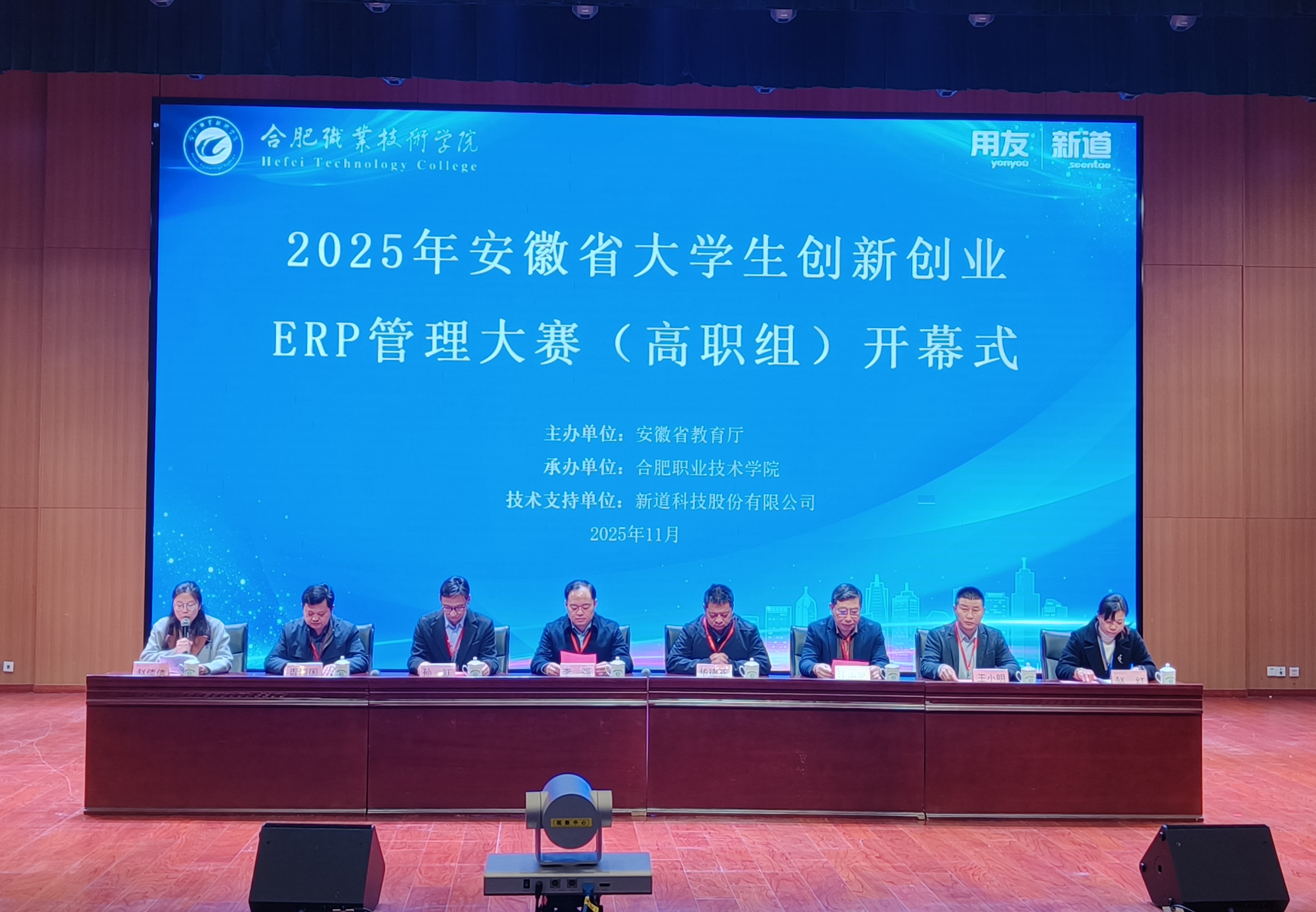 11月22日,由安徽省教育厅主办、伟德官网承办、新道科技股份有限公司提供技术支持的“2025年安徽省大学生创新创业ERP管理大赛(高职组)”在伟德官网大学生活动中心报告厅圆满落幕。