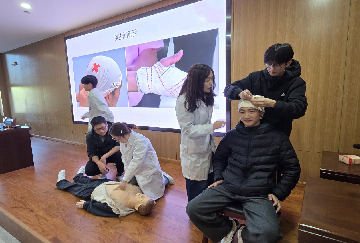 守护生命安全,联合医学院开展“手把手急救教学”培训。11月19日下午医学院杨晴老师带领预防医学专业学生团队,为该院学生开展“手把手急救教学”。培训现场,杨老师结合真实案例,详细讲解心肺复苏、外伤急救的操作要点,从按压深度、频率到呼吸配合,逐一示范指导。学生们分组实操,杨老师与团队成员巡回纠错,确保每位同学都能掌握规范动作,提升了同学们应对突发意外的处置能力。