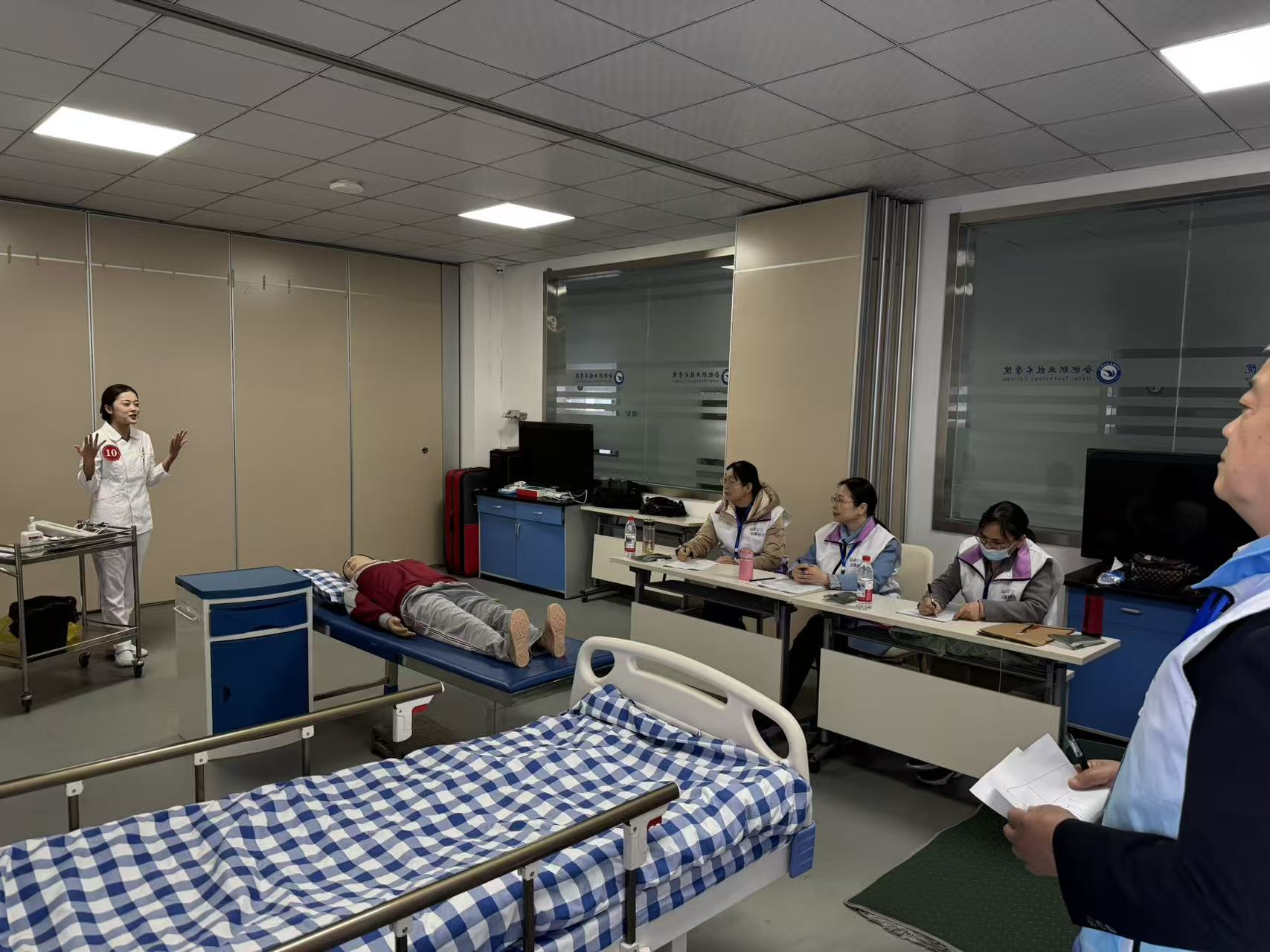 竞赛现场,理论考场内选手们沉着应答,展现出扎实的知识功底;实操赛场上,选手们动作规范、流程娴熟,从患者体位转移时的安全防护,到心肺复苏时的精准按压,每一个细节都彰显着专业素养与人文关怀。评委团由医疗护理领域资深专家组成,按照统一评分标准进行全程监督打分,确保竞赛的公平公正。
