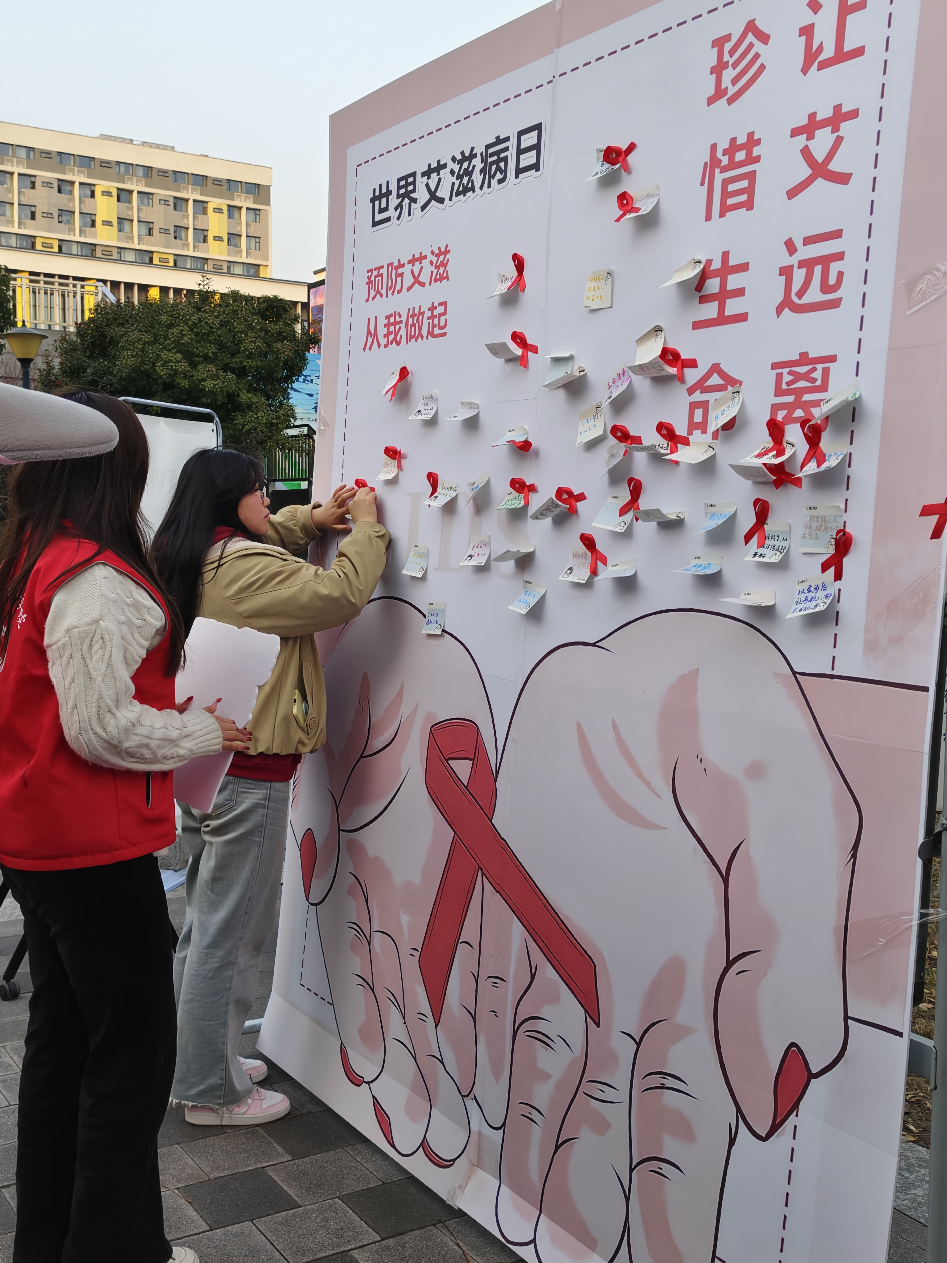 在第38个“世界艾滋病日”当天,为切实提升青年学生的防艾意识与自我保护能力,校团委举办了“青春无艾 守护同行”艾滋病预防宣传主题活动,旨在普及防艾知识,增强青年学生的自我保护意识。活动现场设置“艾”知问答、暖心贴语、健康承诺、暖拥萌伴四大特色摊位,以趣味互动、情感共鸣相结合的方式,让防艾理念深入人心,吸引了众多师生踊跃参与。