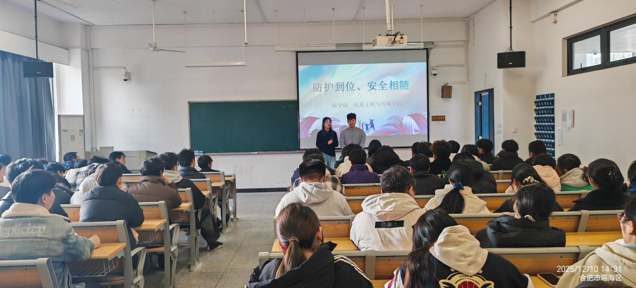 为响应 “健康中国” 战略号召,普及科学健身知识,帮助新手学子规避运动风险,12月10日,医学院运动康复专业学生受邀在汇心湖校区为信息工程与传媒学院学生开展的“新手健身运动防护指南”专题讲座顺利举行。本次讲座由医学院党总支和信息工程与传媒学院党总支联合举办,由康复教研室刘启老师指导,25运动康班李梦祥、李展两位同学担任主讲人,凭借精彩的讲解和丰富的互动形式,吸引了众多对健身感兴趣的同学踊跃参与。