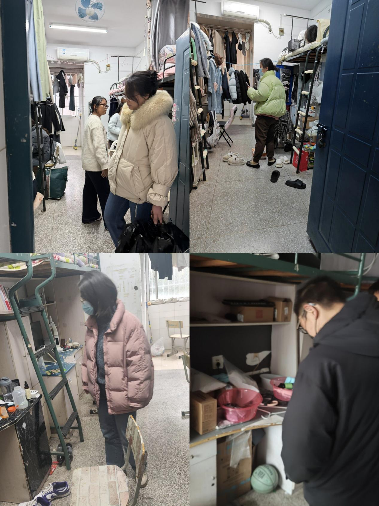 此次检查面向学生公寓2号楼和6号楼,全面排查学生宿舍可能潜在的安全风险,力求做到预防为主、防范有效。检查人员重点检查了违规电器使用、用电安全、消防设施、物品堆放及宿舍整体卫生状况等,并向学生们普及了宿舍用电管理规定和消防安全知识,并警示他们临近元旦和期末,电信诈骗和兼职陷阱频发,务必提高警惕小心提防。针对检查中发现部分宿舍存在卫生盲区、物品摆放混乱、违规使用大功率电器等问题,检查人员现场指导整改,要求相关宿舍及时完成整改任务,强调遵守用电规定的重要性,严禁使用大功率电器,以确保宿舍用电安全,做到防微杜渐,增强安全意识,养成良好的生活习惯。
