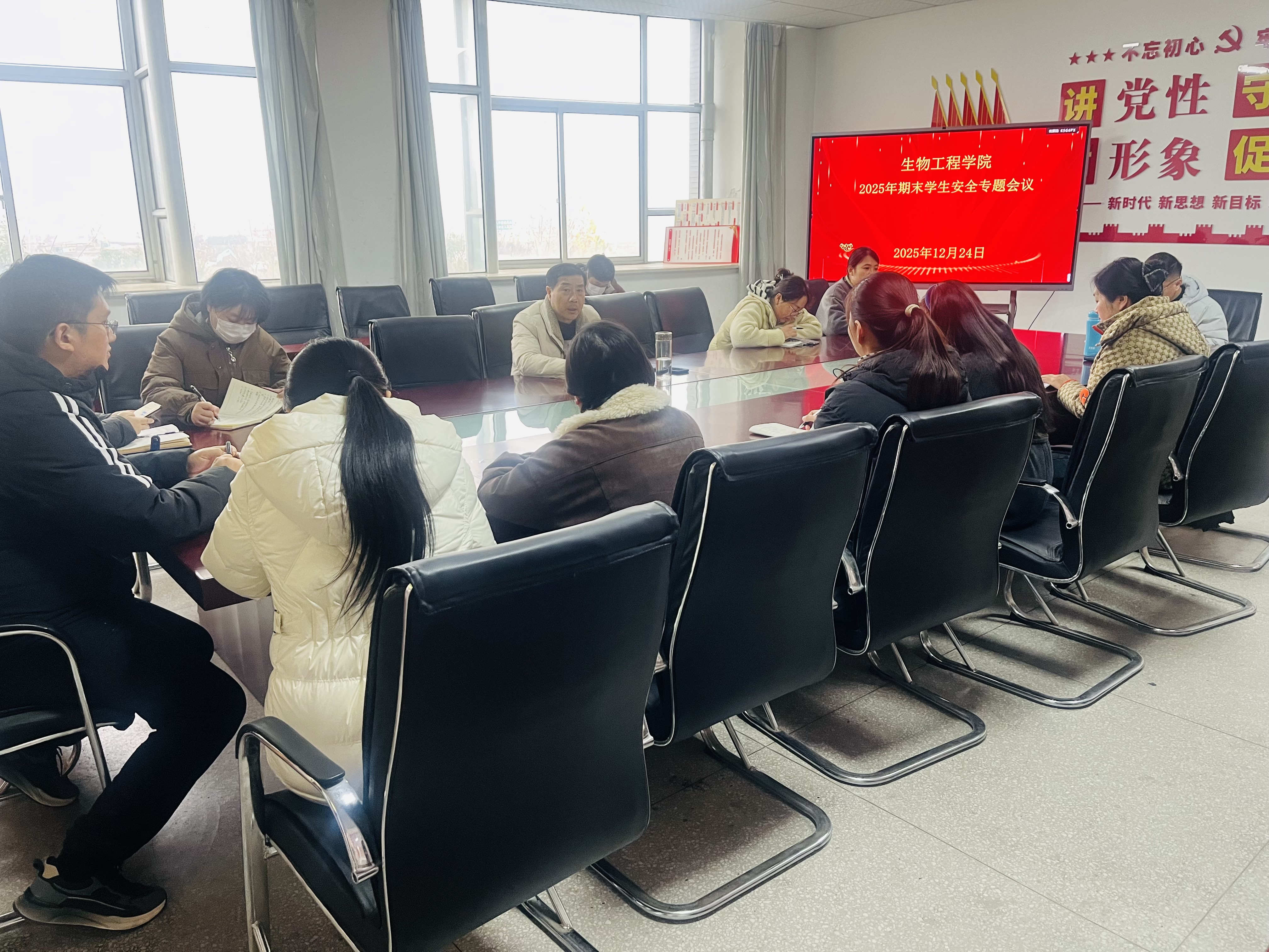 为筑牢校园安全防线,保障学生在校安全,12月24日下午,生物工程学院在生化楼A311召开期末学生安全教育专题工作会议。该院学管办及全体辅导员参加会议,党总支副书记(主持党总支工作)慈龙保出席会议并讲话。