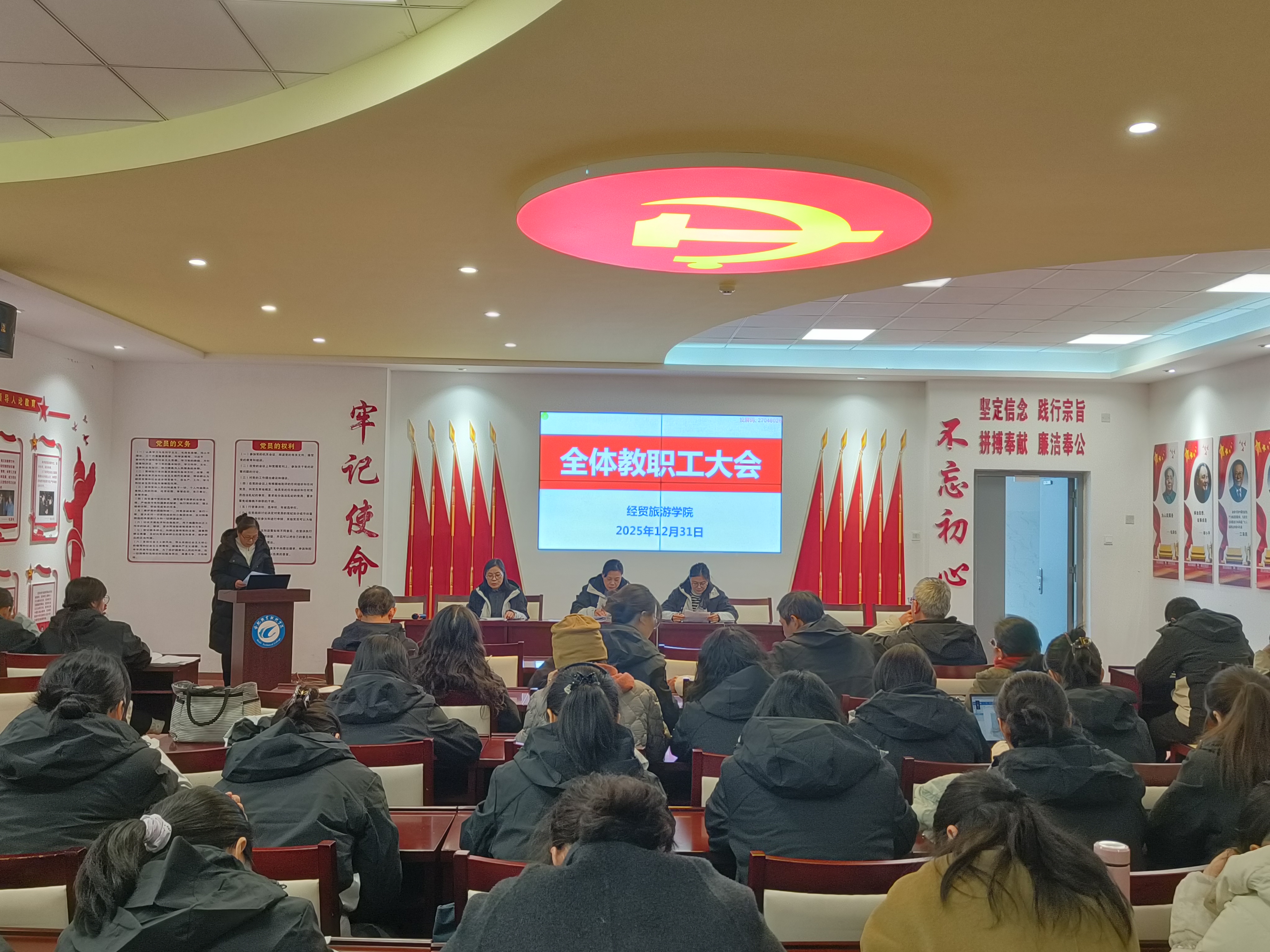 12月31日下午,经贸旅游学院在党性体验馆组织召开12月份政治理论学习会暨全体教职工大会,系统学习近期重要会议精神和决策部署,持续推进党的创新理论入脑入心、指导实践。会议由该院副院长付晓兰主持,该院全体教职工参会。