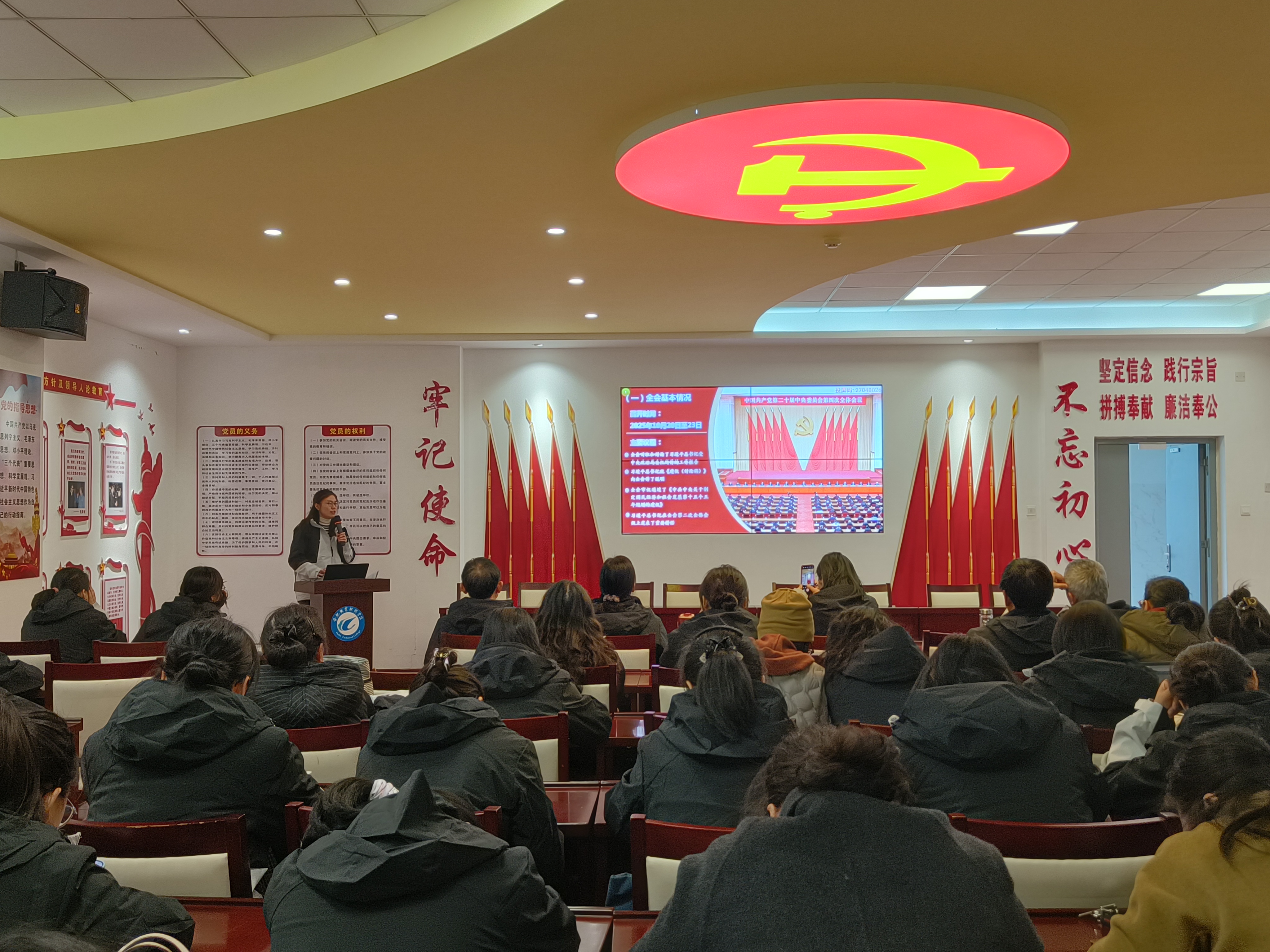随后,赵倩倩以《学习贯彻党的二十届四中全会精神》为题,为与会教职工讲授专题党课。党课深入阐释了全会召开的重大意义与精神实质,简要解析了“十五五”时期国家发展的指导思想、目标任务和战略举措,并着重结合高等教育和职业教育的使命责任,引导全体教师深刻把握新时代对教育工作提出的新要求。她强调,要将理论学习成果有效转化为推动该院事业高质量发展的具体行动和扎实成效,落实到教书育人、管理服务全过程,切实肩负起为党育人、为国育才的职责使命。
