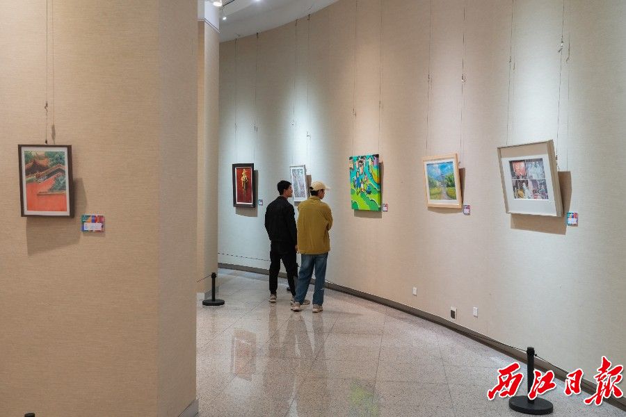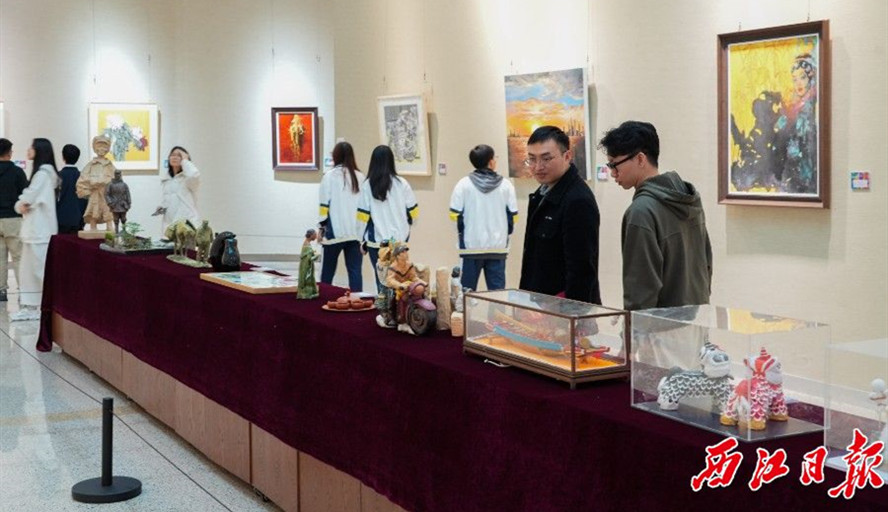 青春以“艺”为笔,以梦想为导向。记者在现场看到,此次展览分为书法、绘画、工艺等类别,涵盖书法、篆刻、国画、油画、版画、水彩、漆艺、陶艺、雕塑等艺术形式。青年学子们用笔墨书画绘出靓丽的青春画卷,展示独特的书画艺术个性,彰显新时代青年艺术气质,促进艺术交流。本次参赛的作品主题鲜明,立意高远,内容积极向上,体现精气神,充满正能量,宣传贯彻习近平新时代中国特色社会主义思想和党的二十大精神,热忱描绘新时代新征程的恢宏气象,表达南粤青年永远跟党走,奋进新征程的决心,彰显岭南文化气质,弘扬中华优秀传统文化。