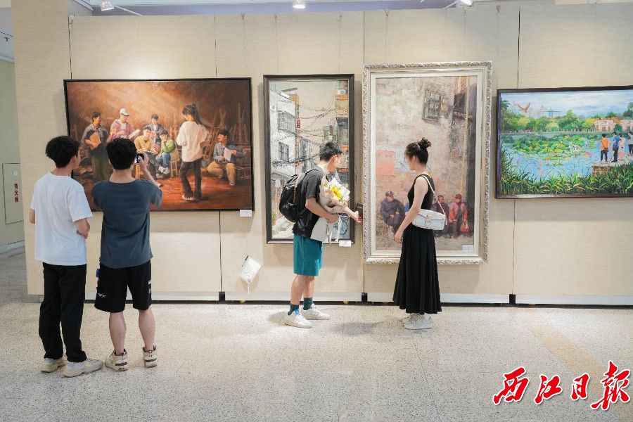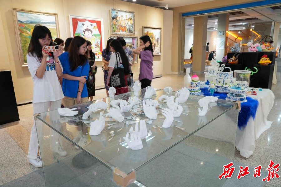 焕发艺术活力,青春未来可期。蕴含醇厚地域历史文化内涵的国画,富有时代印记和生活气息的水彩画、油画,记录历史影像的木刻,还有用油画形式表现“南国红豆”粤剧,光怪陆离的“山海经”主题潮玩沙盘,中法文化之春主题的IP设计,充满线条美感的竹材公共阅读空间家居设计,七星岩旅游景区插画及文创设计,童趣梦想的粘土作品……500多件不同类别、具有不同视野关注点的美术作品,展示当下艺术青年的时代表达。