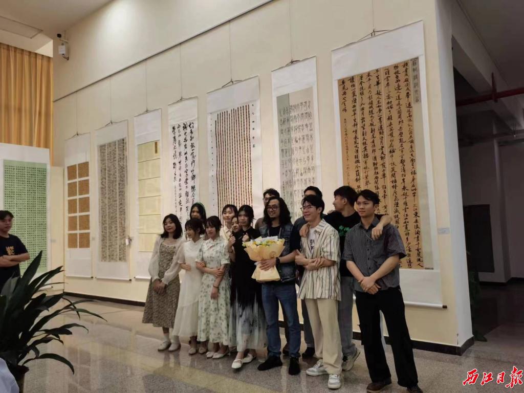 记者在现场看到,这些作品题材多样、内容丰富,具有鲜明的地域特色和时代气息,饱含了同学们蓬勃的艺术激情、旺盛的艺术创造力和丰富的艺术想象力,全方位诠释了四年来的生活实践和学习成果。他们以强烈的社会责任意识,通过鲜活的作品回望历史、记录社会、展望未来,表现出当代艺术青年的社会担当;以立体多元的视野,借助多样化的综合媒介,将新技术、新观念注入美术的表现手法中,用笔墨丹青关注现实、描绘时代变革,体现家国情怀与时代使命,并在创作中突出了创新能力、实践能力和思维能力,呈现积极向上的价值观和文化观,体现学子们的独立思考和青春活力,给大家带来一场视觉盛宴。毕业季来临,展览现场青春洋溢,繁花似锦,赏心悦目。记者发现,很多毕业作品除了创意、创作过程介绍外,还特别放置了寄语明信片或签名留言板,让同学们将四年的成长故事画下一个完美句点,在对国家、对社会的奉献中书写人生新篇章。