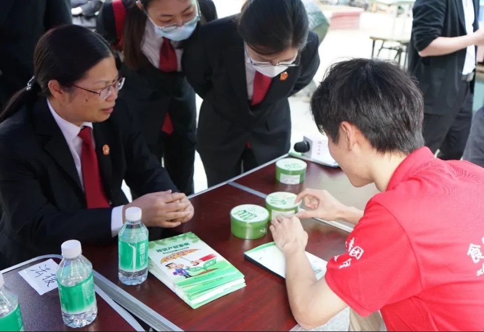 “你们可以仔细辨别一下,这两罐芦荟胶有什么不同?”普法活动中,法官团队还把在审判实践中遇到的侵权商品带到现场展示,吸引不少学生的注意力。学生在指引下一边仔细辨别商品商标、外包装等细节,一边认真聆听法官释法分析。法官们结合司法审判的实际经验,为学生普及知识产权等相关法律法规,并针对他们提出的问题作出详细解答。