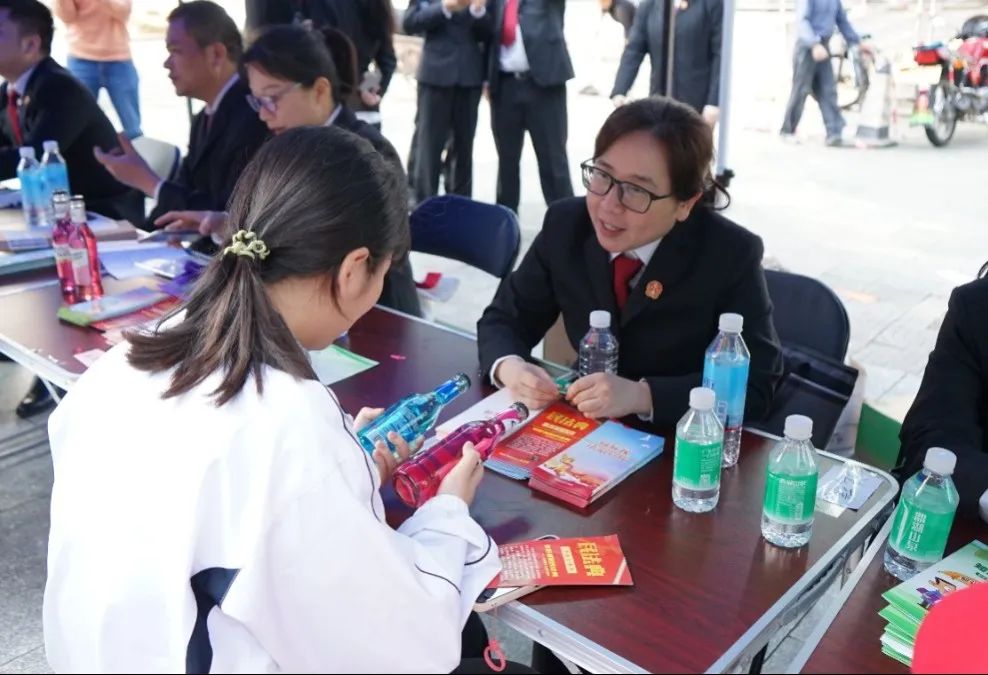 “不小心买到‘山寨’货,我们要怎么维权?” 活动期间,工作人员在校园内设置普法宣传咨询台,学生们见到法官“坐镇”现场,纷纷围上前咨询法律问题,现场热闹非凡。