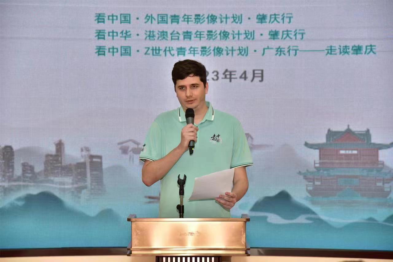 外国青年导演代表、广东工业大学巴西留学生倪晟在发言中表示,参加“看中国”项目是一种全新的独特体验,让他更加深入地了解中国文化,也让他在和团队成员一起奋斗的经历中成长,感谢项目组每一名成员的付出。