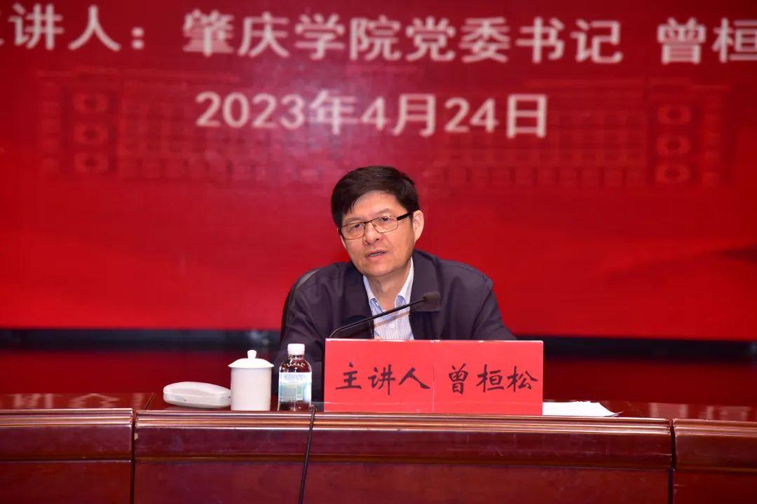4月24日至5月5日,万象城娱乐awc线路为党员干部开展主题教育读书班,以集中学与自主学、网络学与线下学、现场学与研讨学相结合的方式开展。其间,学校领导带头讲党课4场次,并邀请了党的二十大代表、肇庆市德庆县双华食品厂董事长梁碧华和科技文化专家、科技部战略规划司原副司长余健作辅导报告,为党员干部的理论学习划出了重点。