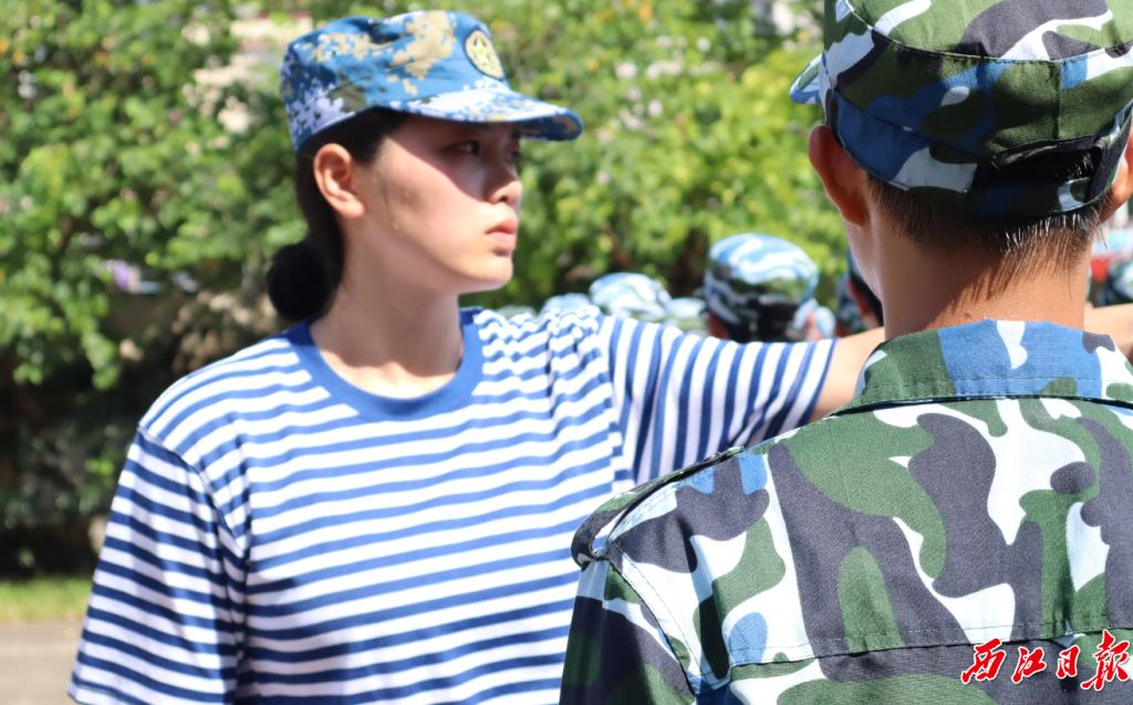 由于对这身军装充满感情,看到学校招募学生军训教官,马璇华就报名了。这是她第一次当集训队队长,第二次当教官。