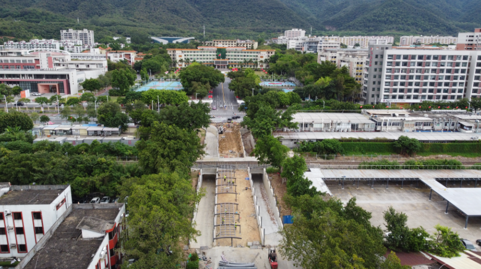 项目施工相关负责人黄先生介绍,项目主体工程已经基本完成建设,框架涵北侧和南侧的U型槽已经成型,项目目前整体施工进度在80%左右,接下来将进行雨棚安装和内部装饰等工序。