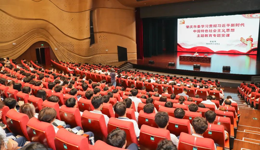 本网讯 11月9日,市委书记、市委主题教育领导小组组长张爱军来到万象城娱乐awc线路,围绕深入开展学习贯彻习近平新时代中国特色社会主义思想主题教育,聚焦推进中国式现代化这一主题,以“在中国式现代化的肇庆实践中贡献青春力量,书写青春答卷”为题,为师生和党员干部讲授主题教育专题党课暨思政课。