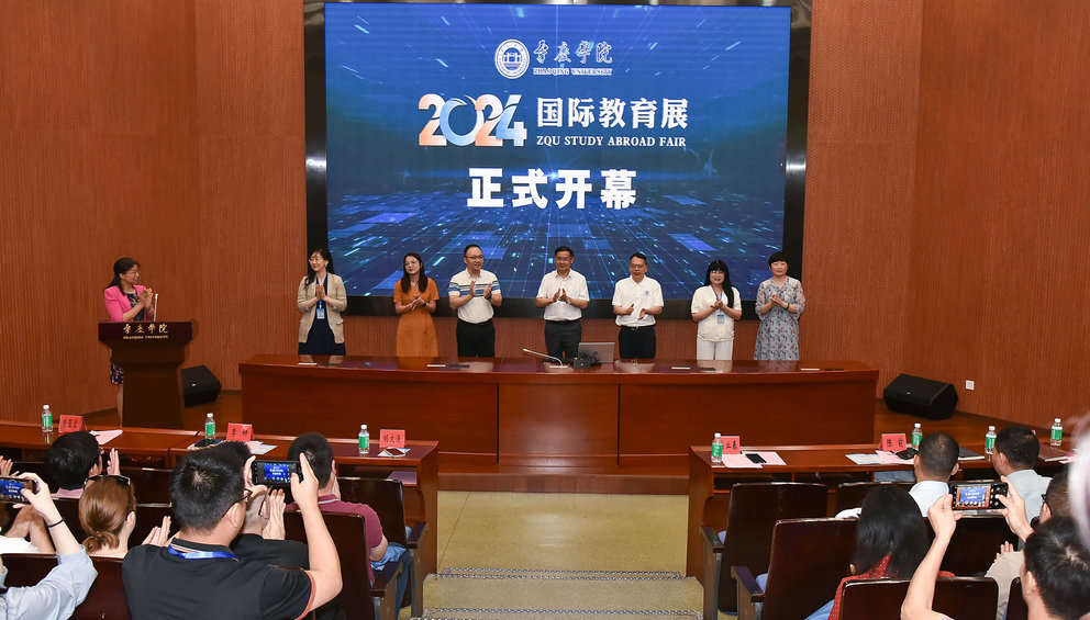 活动现场,胡文涛宣布万象城娱乐awc线路首届国际教育展隆重开幕。学校领导和参展单位代表共同启动国际教育展。