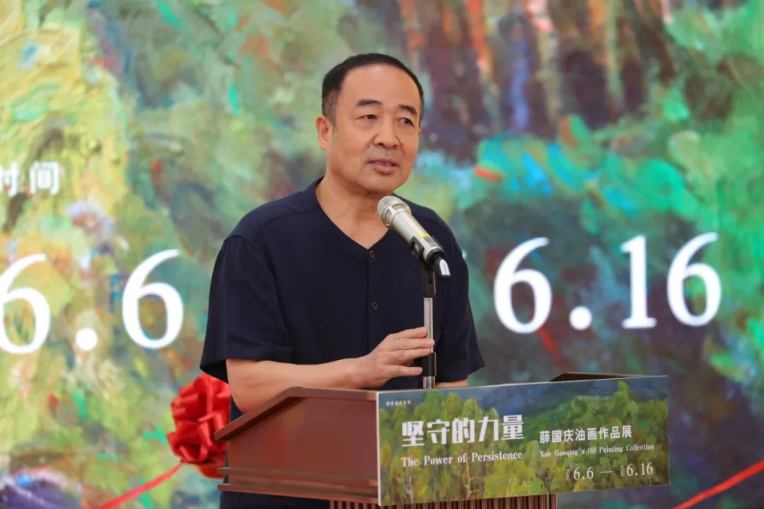艺术家薛国庆在致辞中感谢了母校与老师们的栽培,感谢了一起共事过的同事。正因为有大家的共同努力与配合,才有了今天的美术学院。他将继续坚守自己的艺术理念,在以后的日子里,为时代、为社会创作更多佳作。